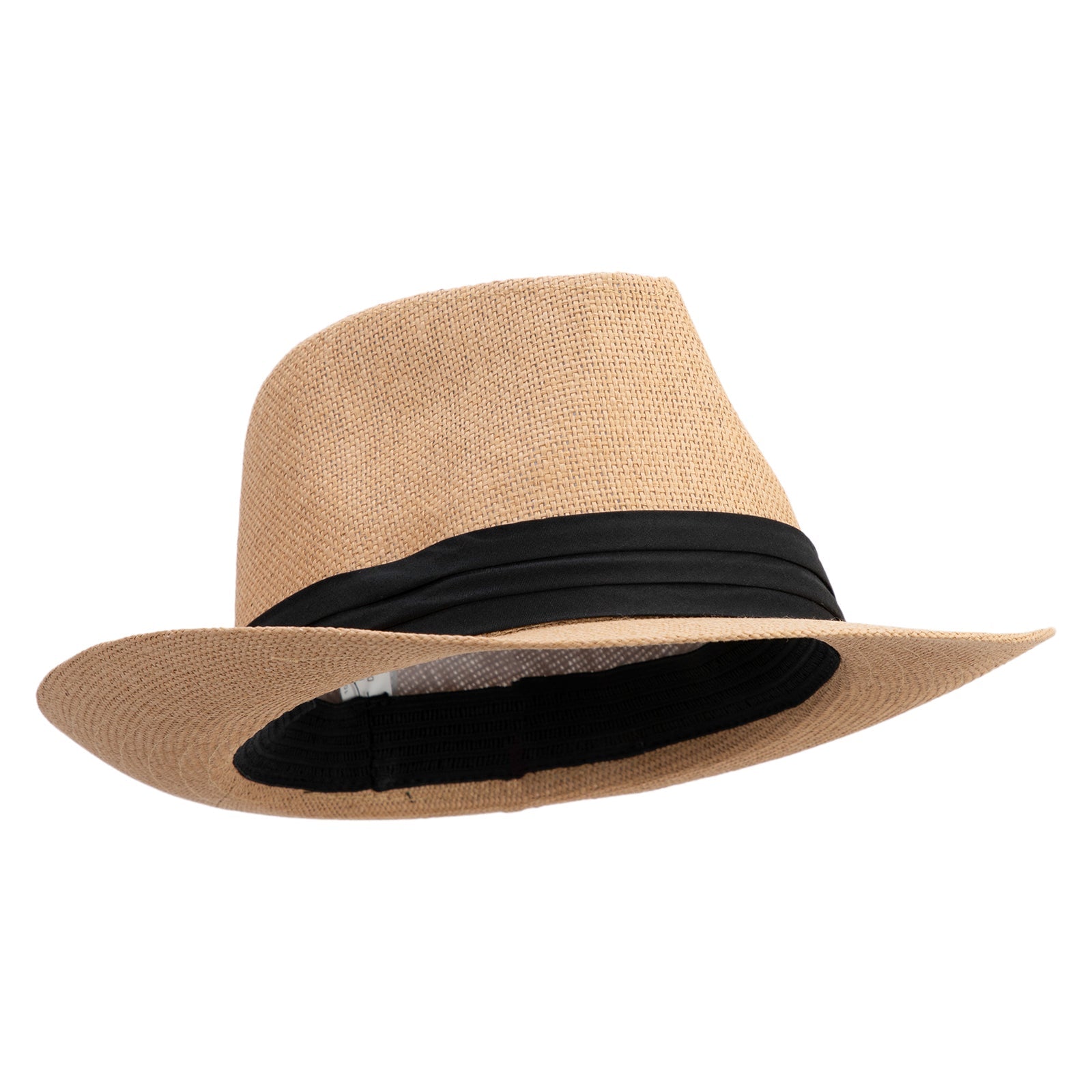 Crown Details, Features a 5-inch deep crown with stylish ribbon hat band and comfortable elastic sweatband inside