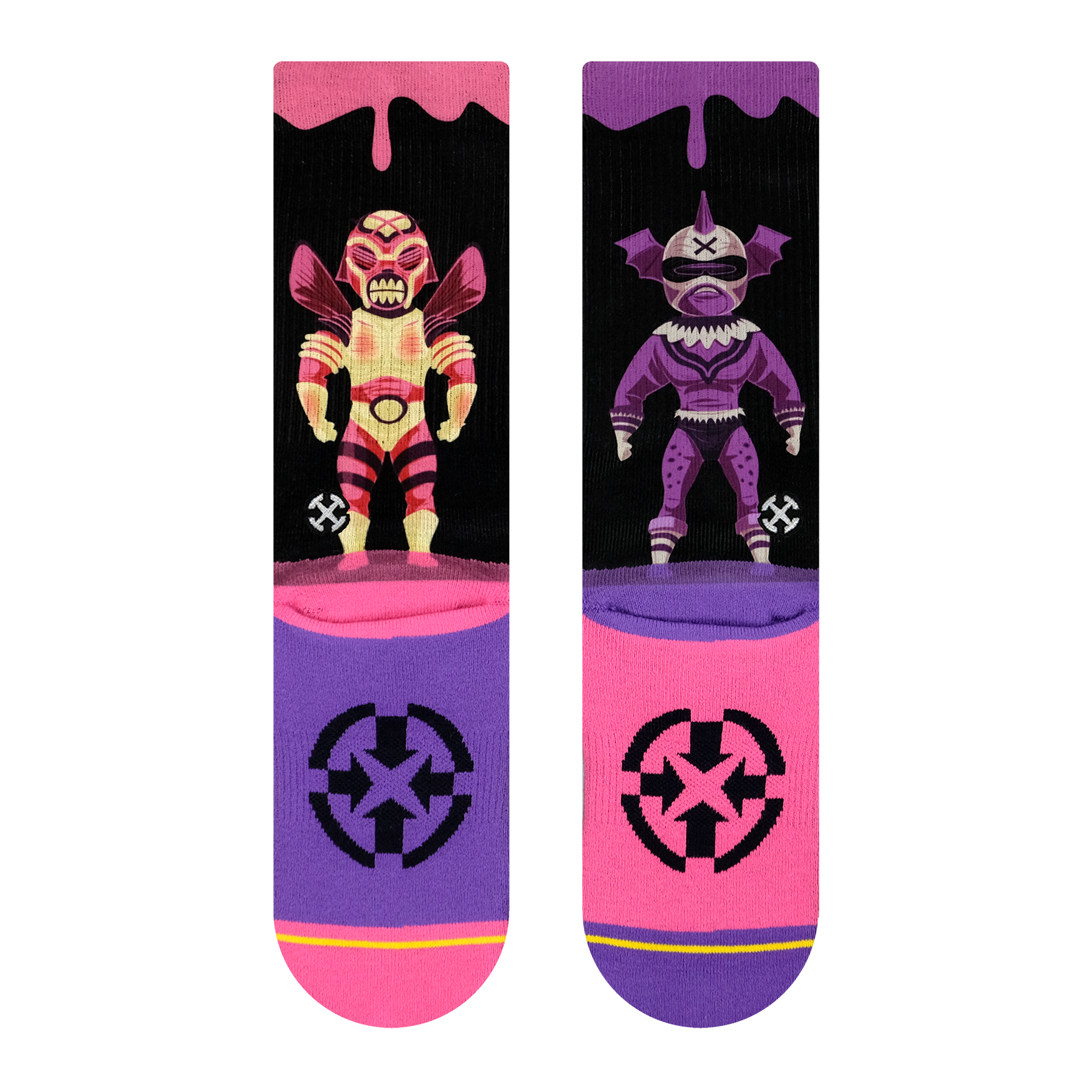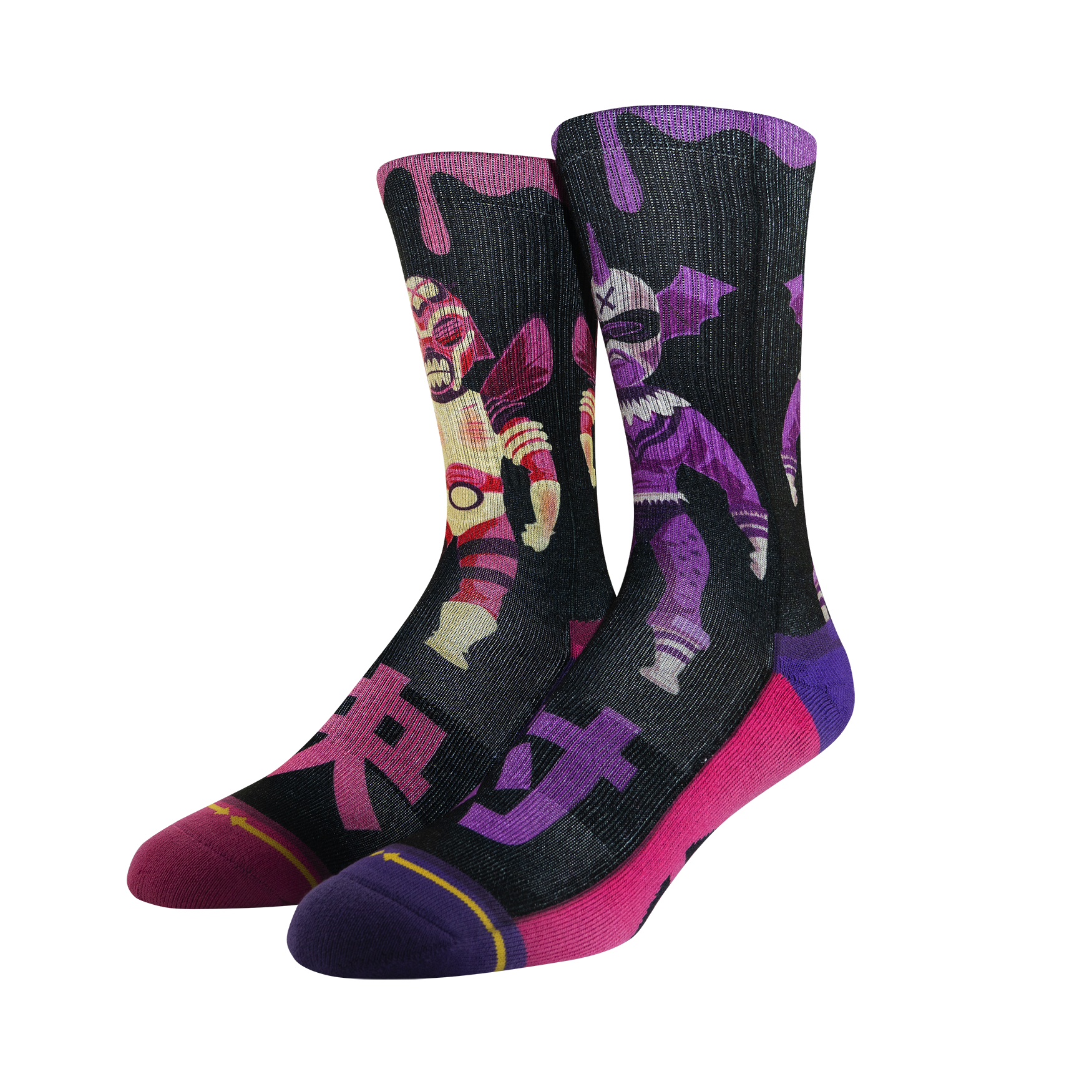 These Japanese robot monster crew socks feature artwork from artist, Brandon Ragnar. Keep your feet happy with elastic arch support, seamless toe and heel and a stay-put cuff.
