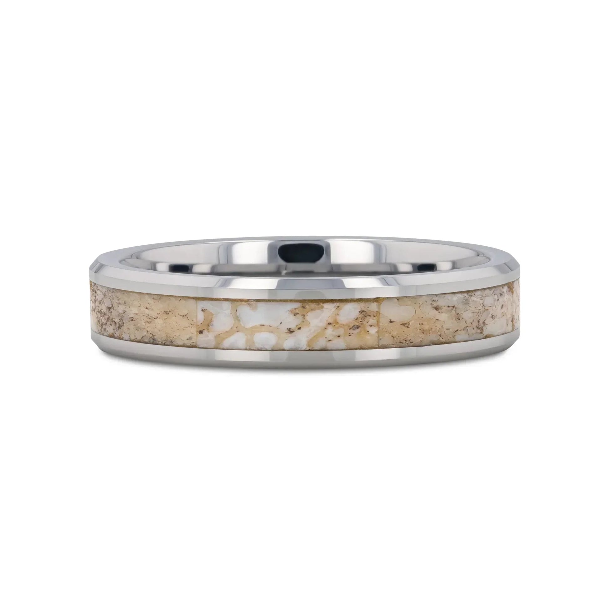 MESOZOIC Men’s Tungsten Flat Beveled Wedding Ring with White Dinosaur Bone Inlay - 4mm