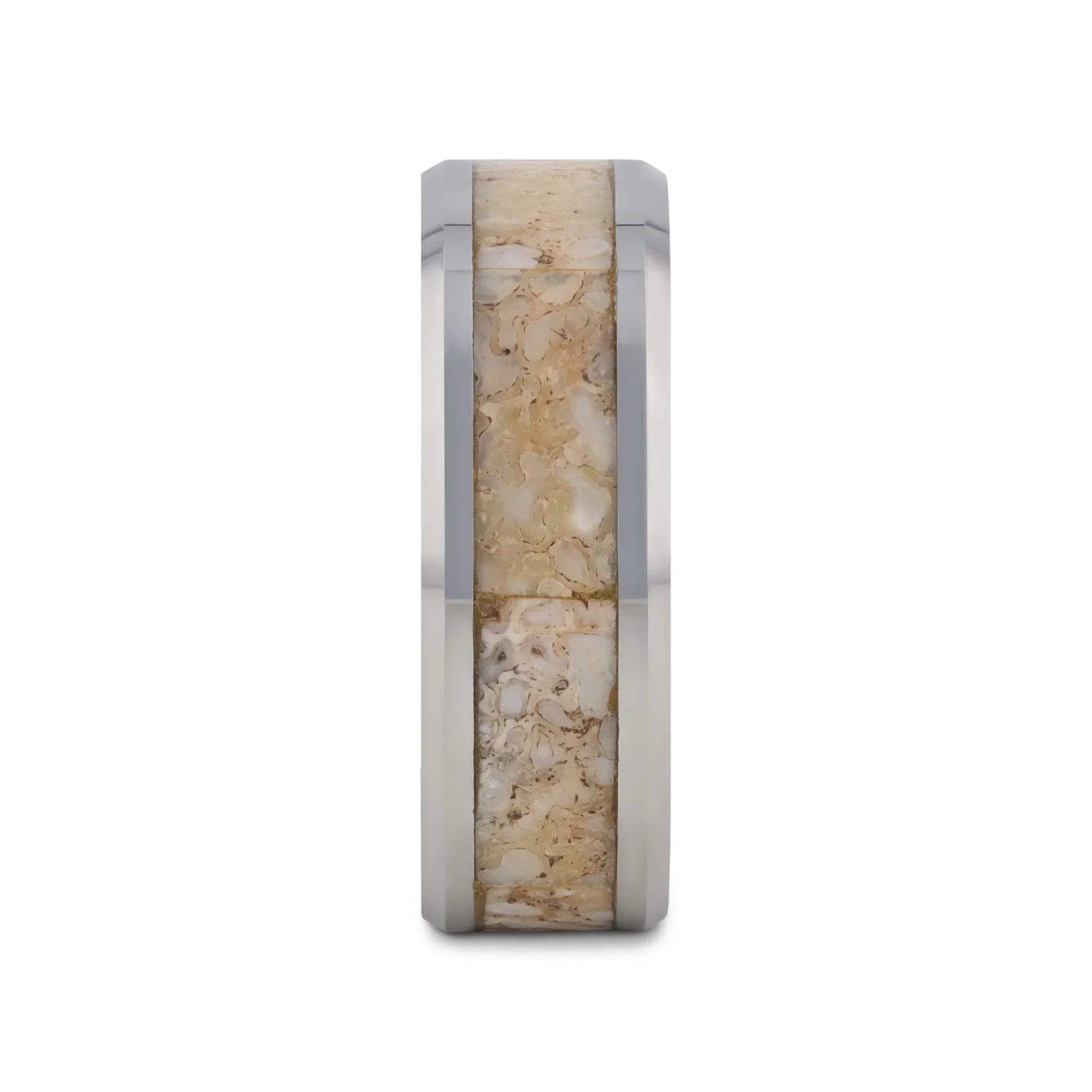 MESOZOIC Men’s Tungsten Flat Beveled Wedding Ring with White Dinosaur Bone Inlay - 4mm or 8mm