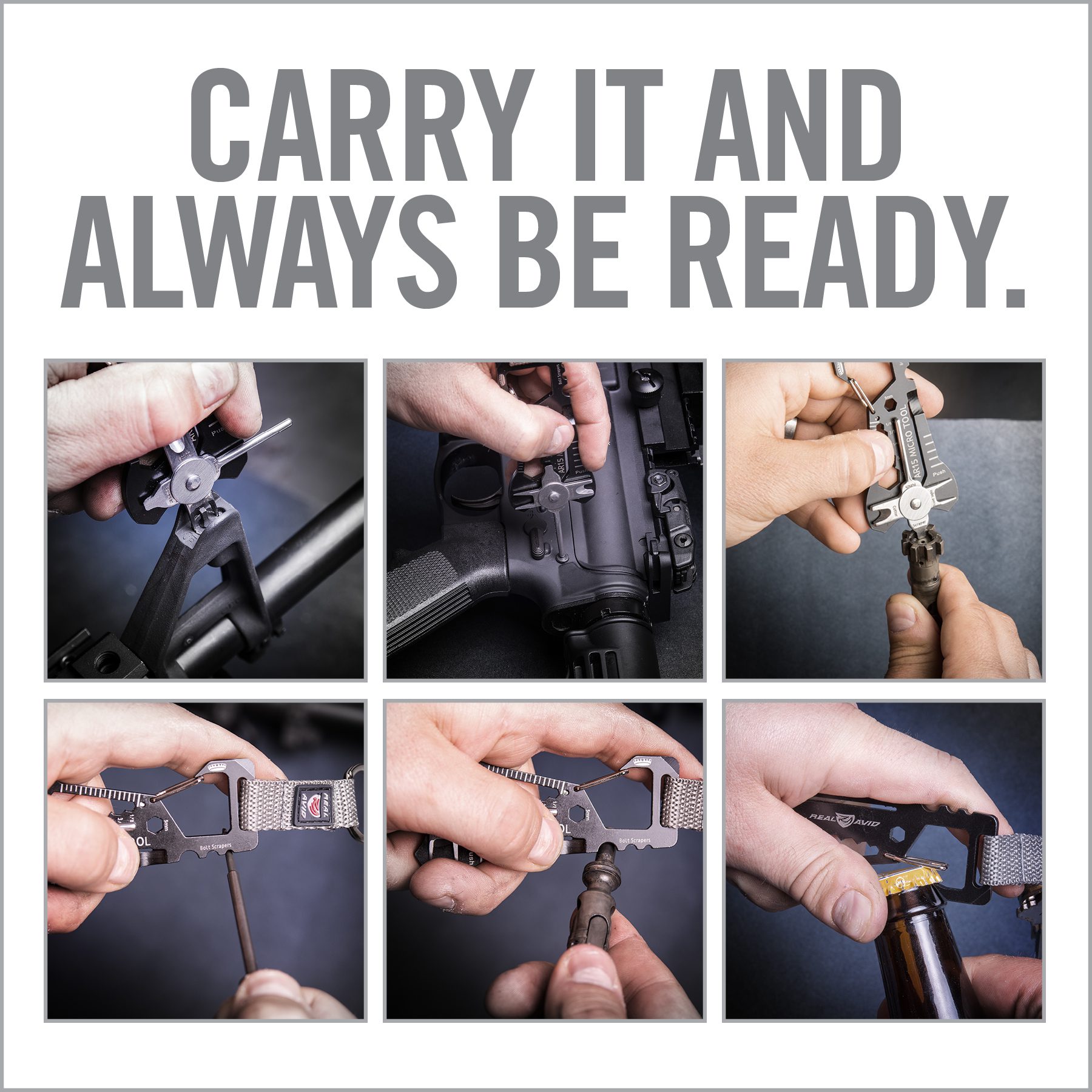 Real Avid Micro Tools take gun specific functionality and pack it into a micro sized tool to take with you wherever you go. A multitude of breakdown, cleaning, adjusting and sighting-in options are available in the pint size tools that are as welcome on your keychain as they are at the range. We created these tools so that we would always be prepared, no matter the scenario. What we found out was, people loved using them as a statement of who they are and what they stand for, as much as they used them for their intended purpose. Real Avid Micro Tools aren’t just functional, they’re personal.