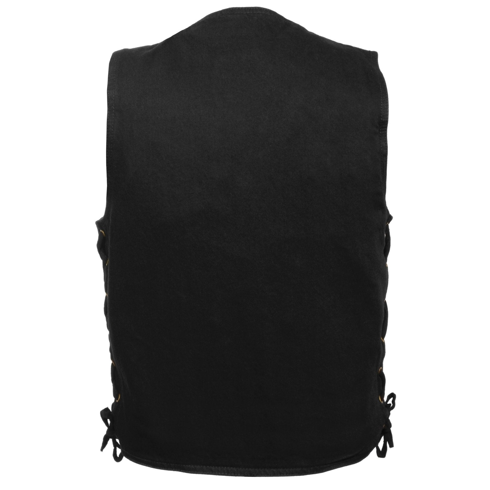 Milwaukee Leather DM1315 Men's Black Classic Denim Western Style Cowboy Biker Vest with Adjustable Side Laces