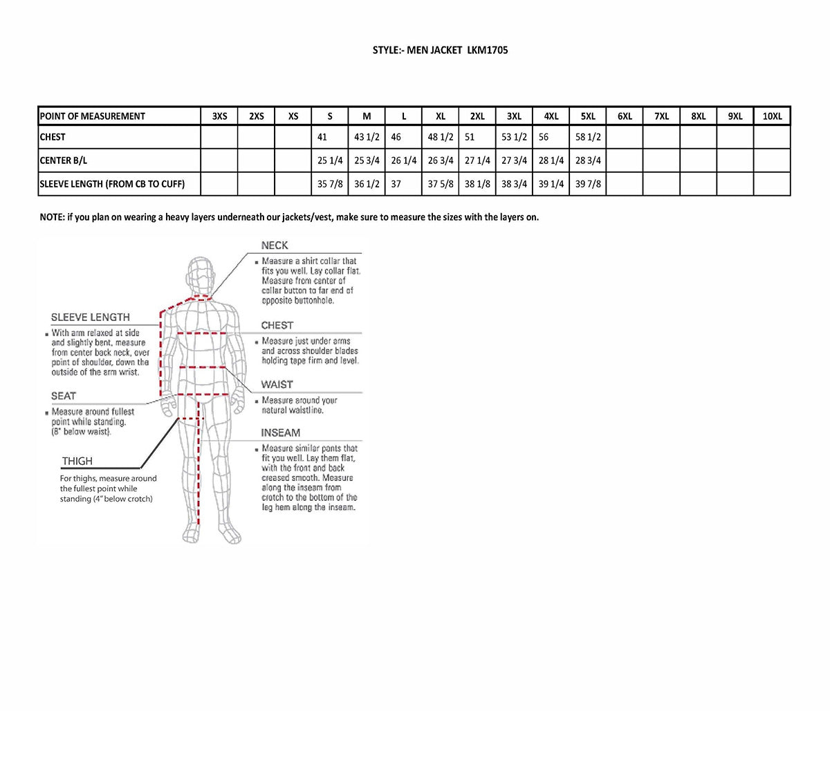 - Full Sleeve Zip Out Thermal Liner