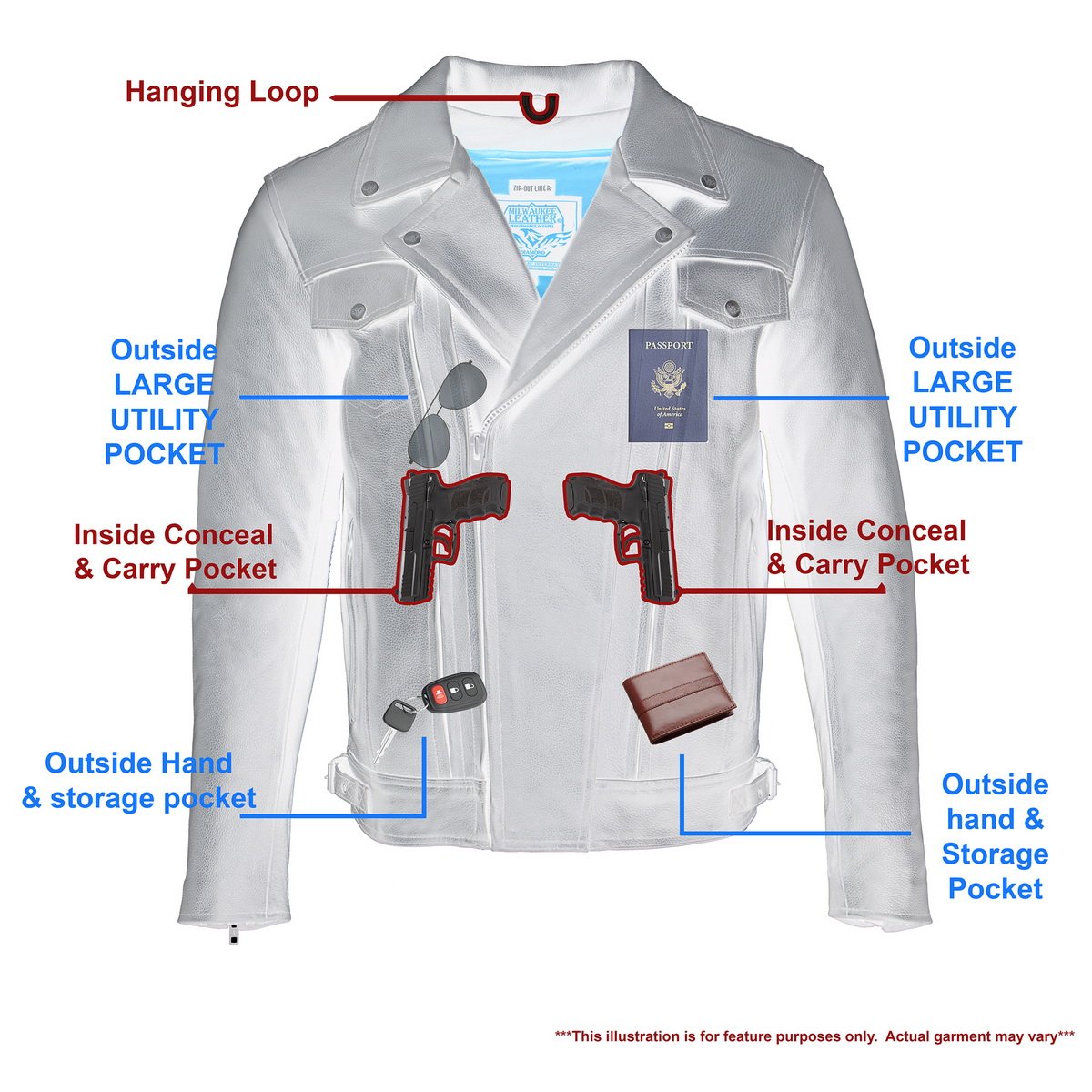 Milwaukee Leather LKM1720 Men's Black Premium Leather Motorcycle Vented Leather Jacket w/ Multi-Utility Pockets