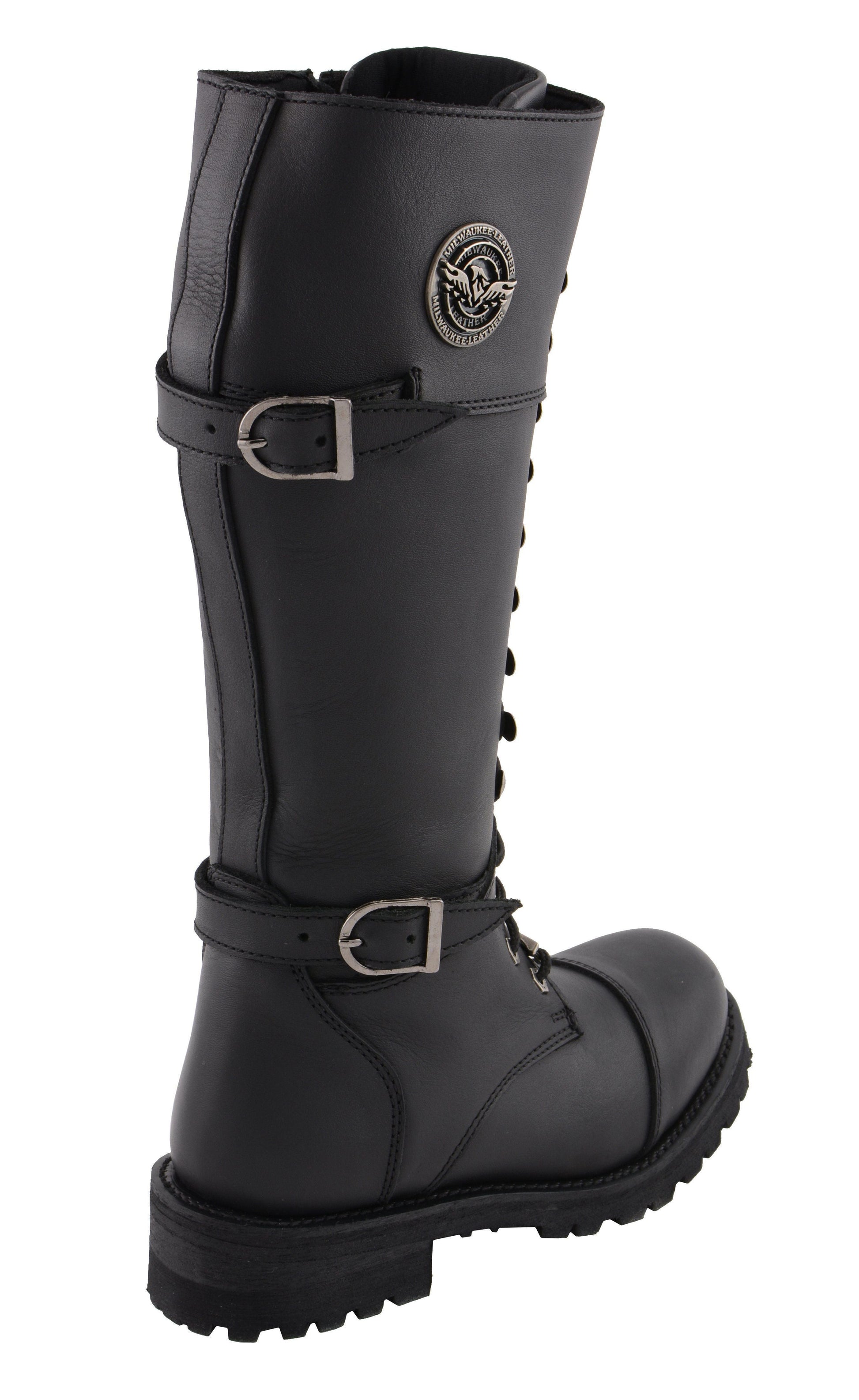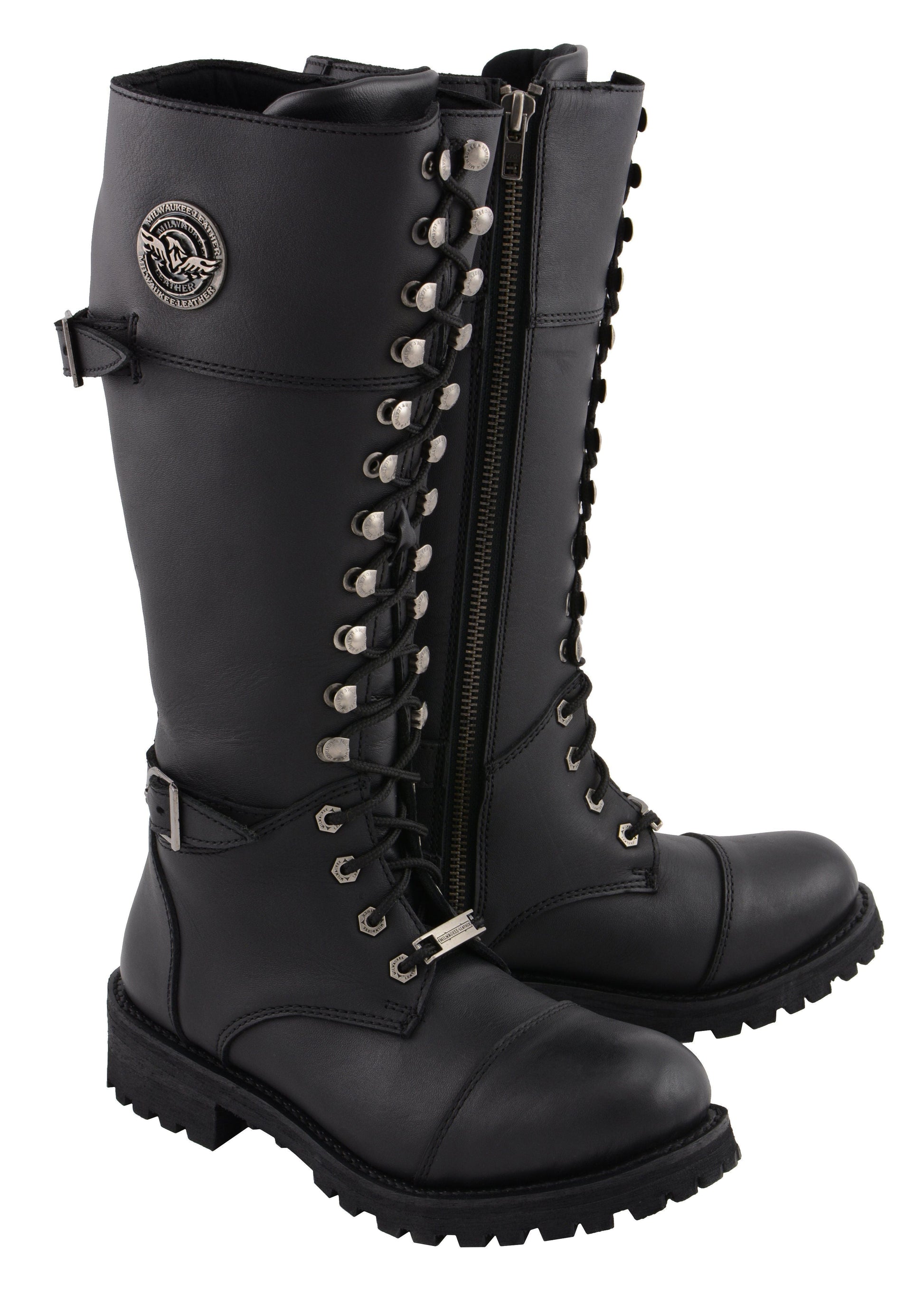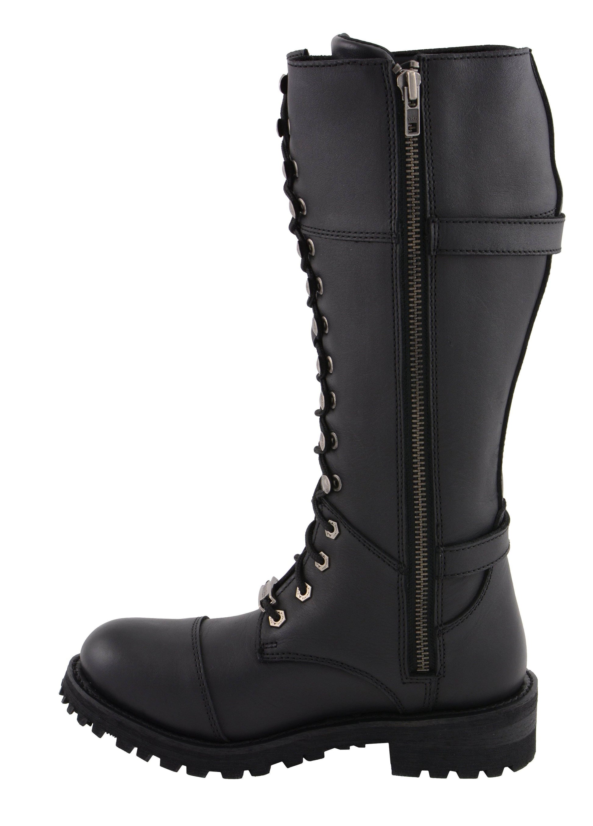 Milwaukee Leather MBL9390 Women’s Black 16-inch Lace-Up Front Cap Toe Motorcycle Riding Leather Boots