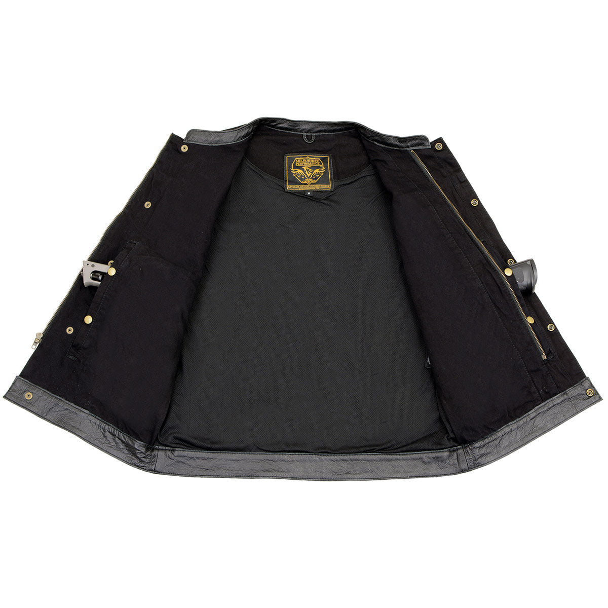 Milwaukee Leather MDM3010 Men's Black Denim Club Style Biker Vest with Leather Trim and Hidden Zipper