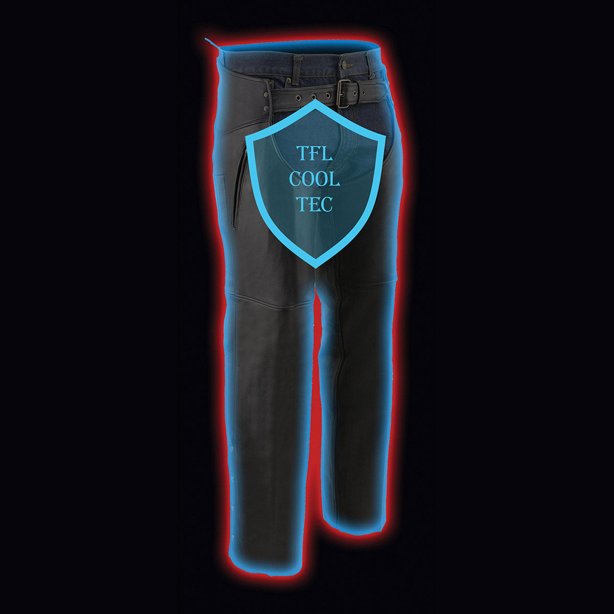 Milwaukee Leather MLM5502 Men's Black 'Cool-Tec' Motorcycle Leather Chaps with Zippered Thigh Pockets