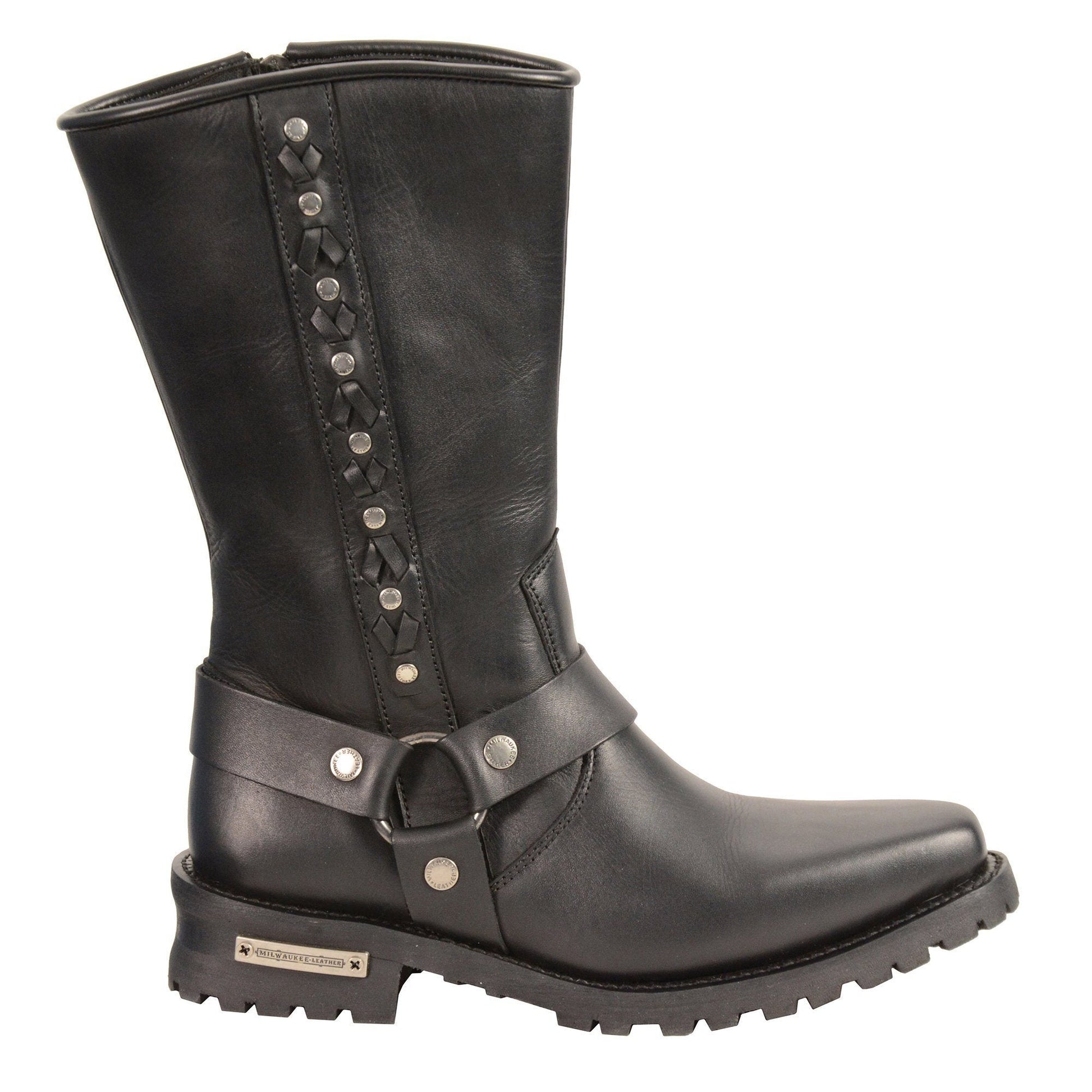 Milwaukee Leather Men's Black Leather Harness Motorcycle Boots with Braid and Riveted Details MBM9025