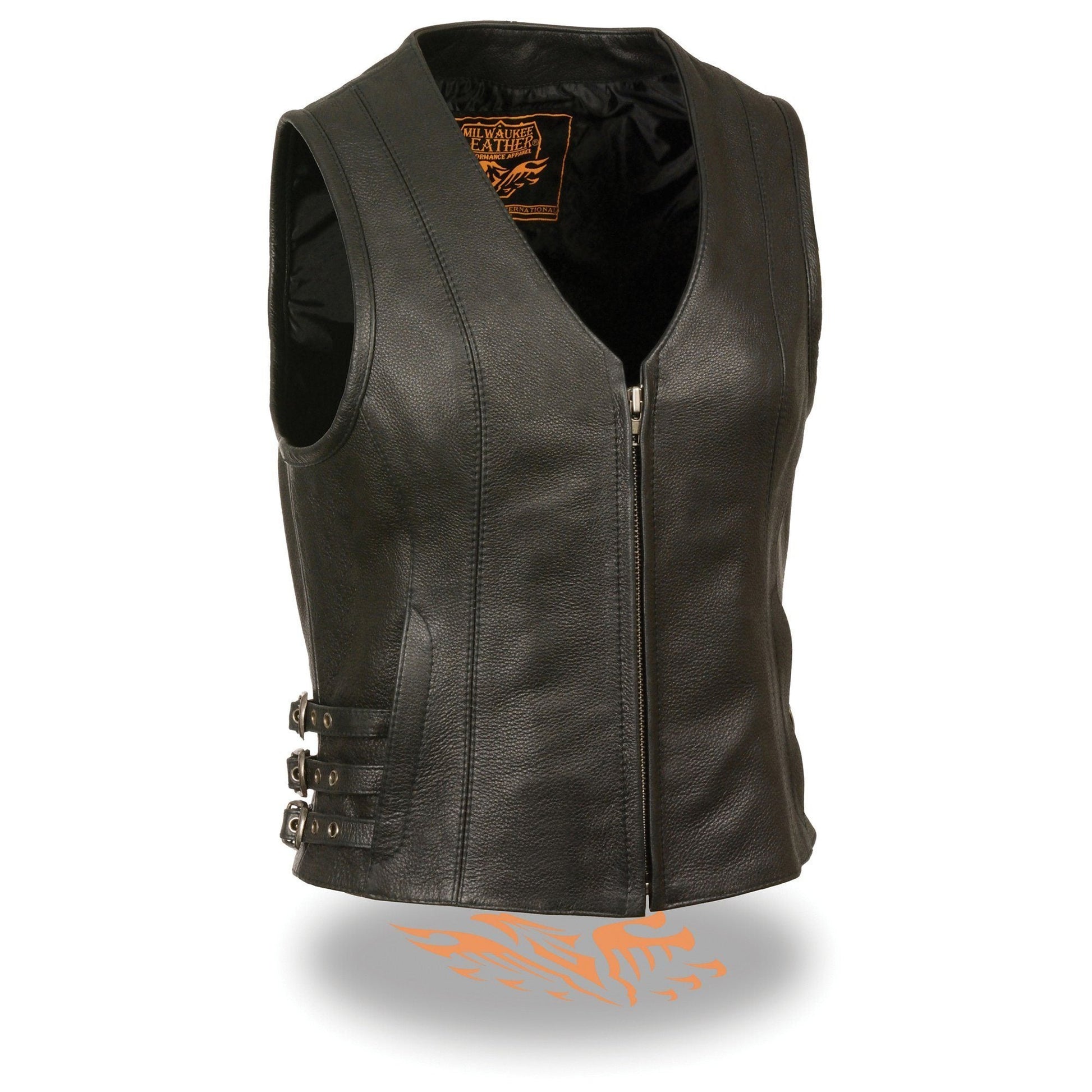 Milwaukee Leather MLL4510 Women's Premium Black Leather Motorcycle Rider Vest w/ Adjustable Side Buckle