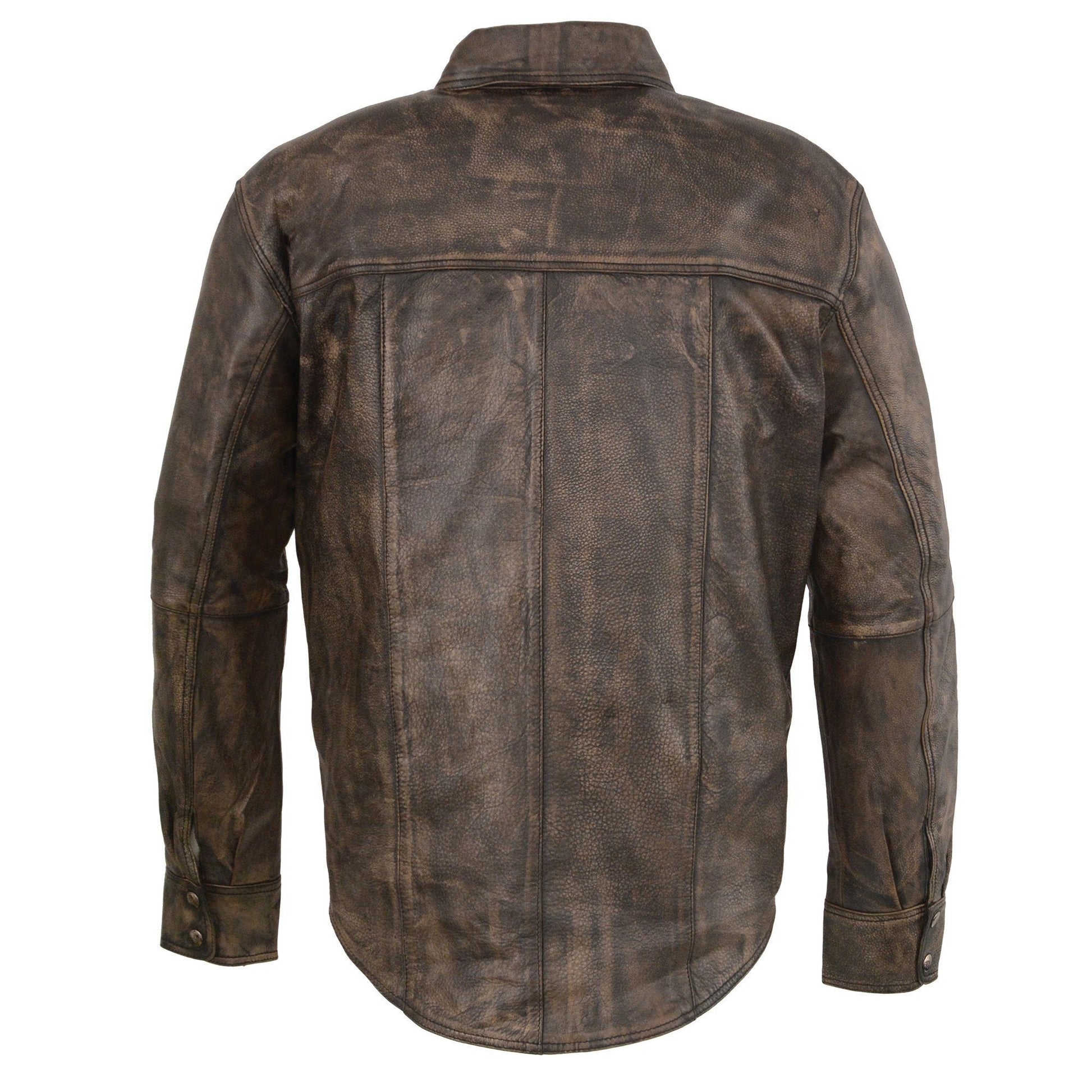Milwaukee Leather MLM1606 Men's 'Button Down' Distressed Brown Casual Biker Leather Shirt