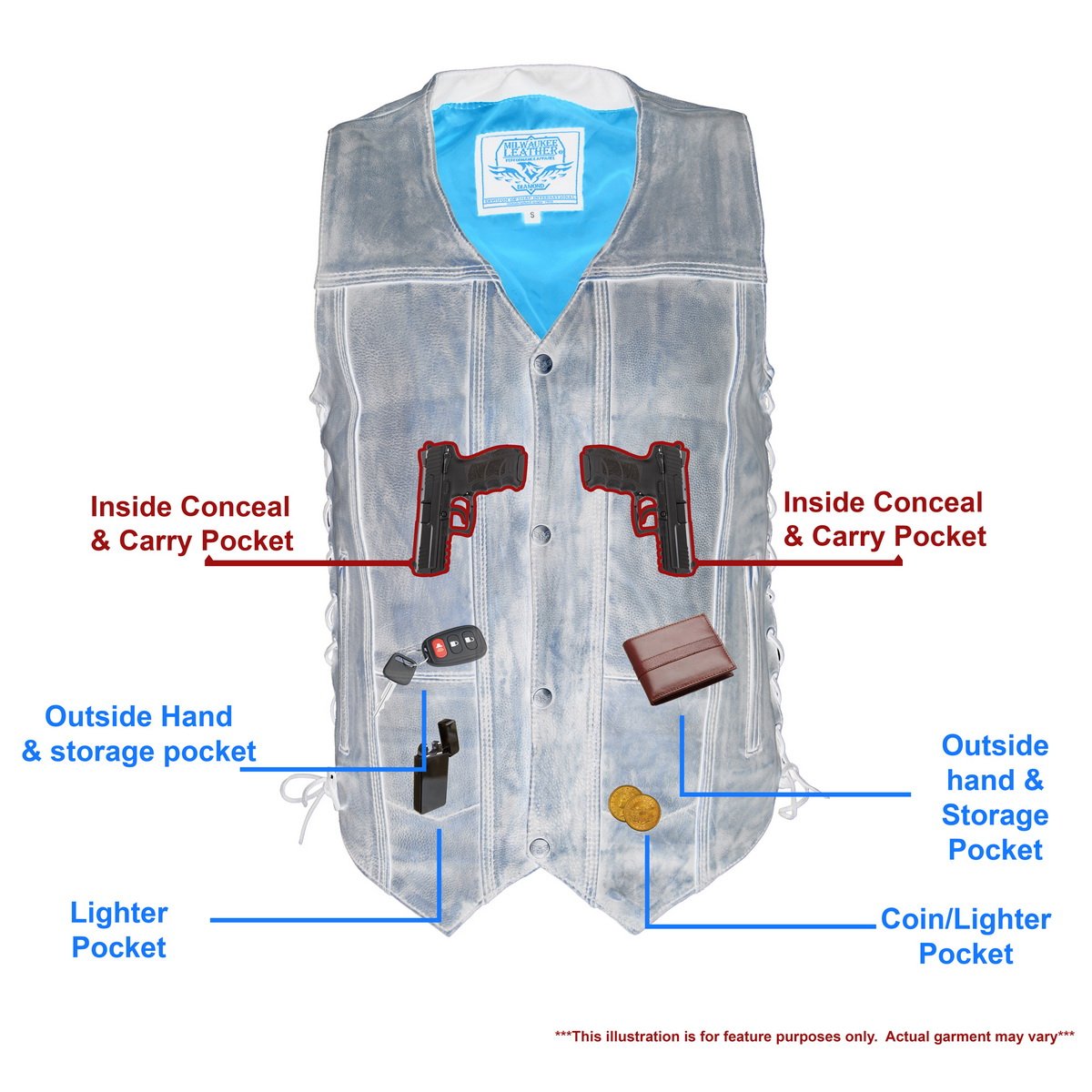 Milwaukee Leather MLM3540 Men's Roulette Distressed Brown 10 Pocket Motorcycle Leather Vest