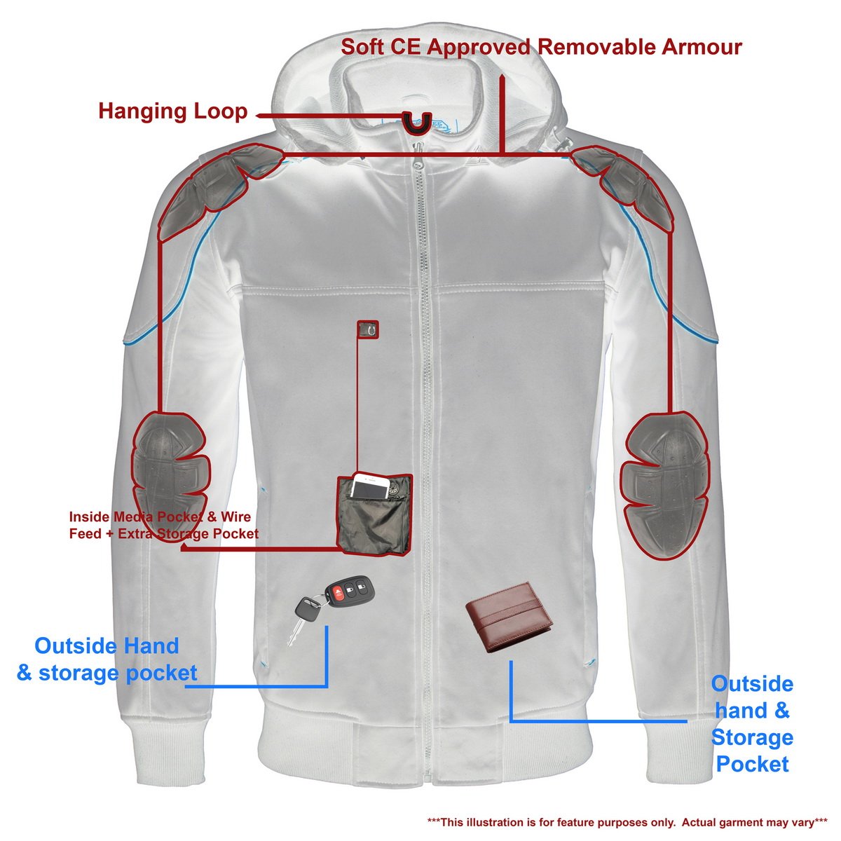Milwaukee Leather MPM1764 Men's Black Soft Shell CE Armored Motorcycle Racing Style Hoodie Jacket w/ Detachable Hood