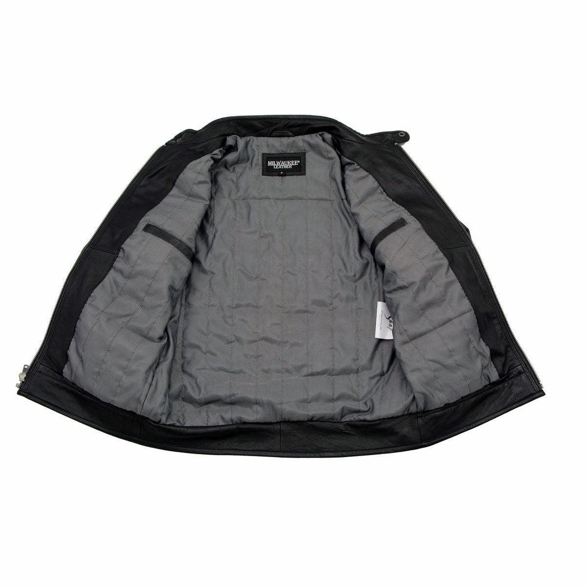 Milwaukee Leather SFM1866 Men's Classic Black Premium Leather Motorcycle Style Jacket with Zipper Front