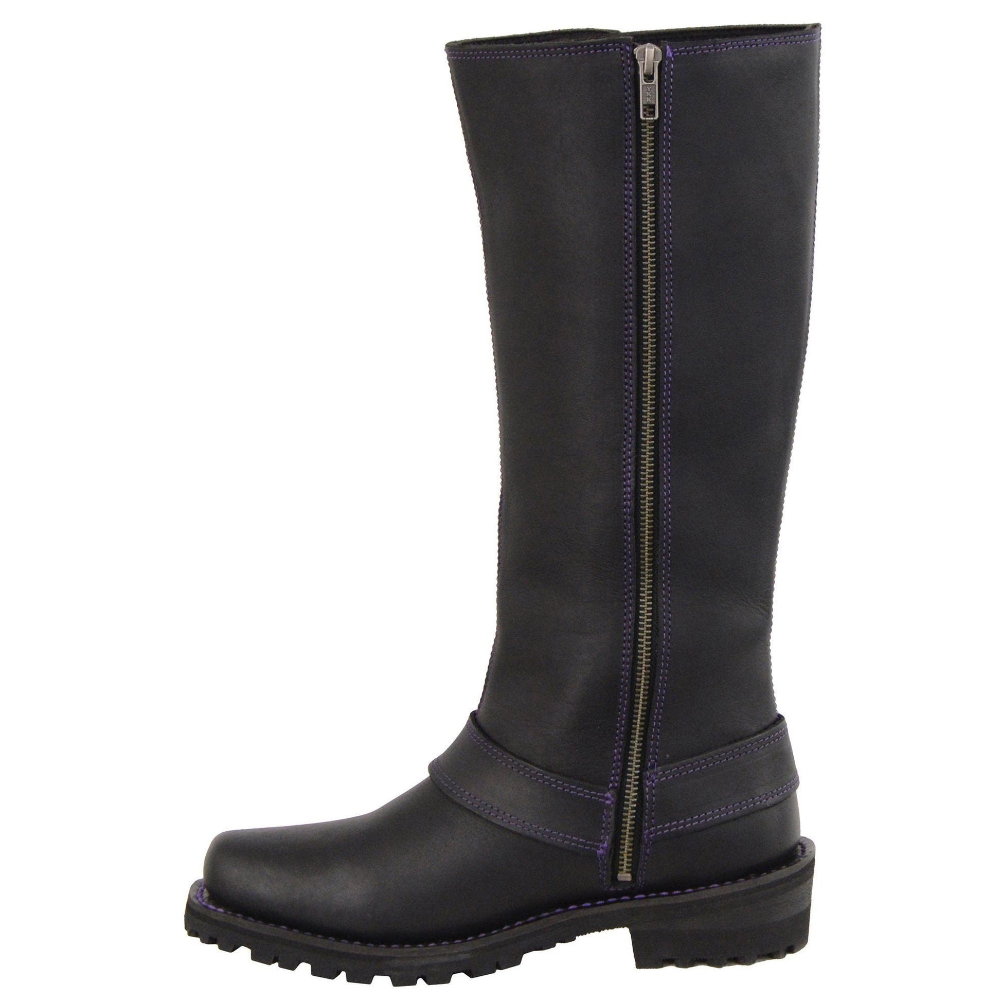 Milwaukee Leather Women's Black 14-inch Leather Harness Motorcycle Boots with Purple Accent Lacing MBL9366