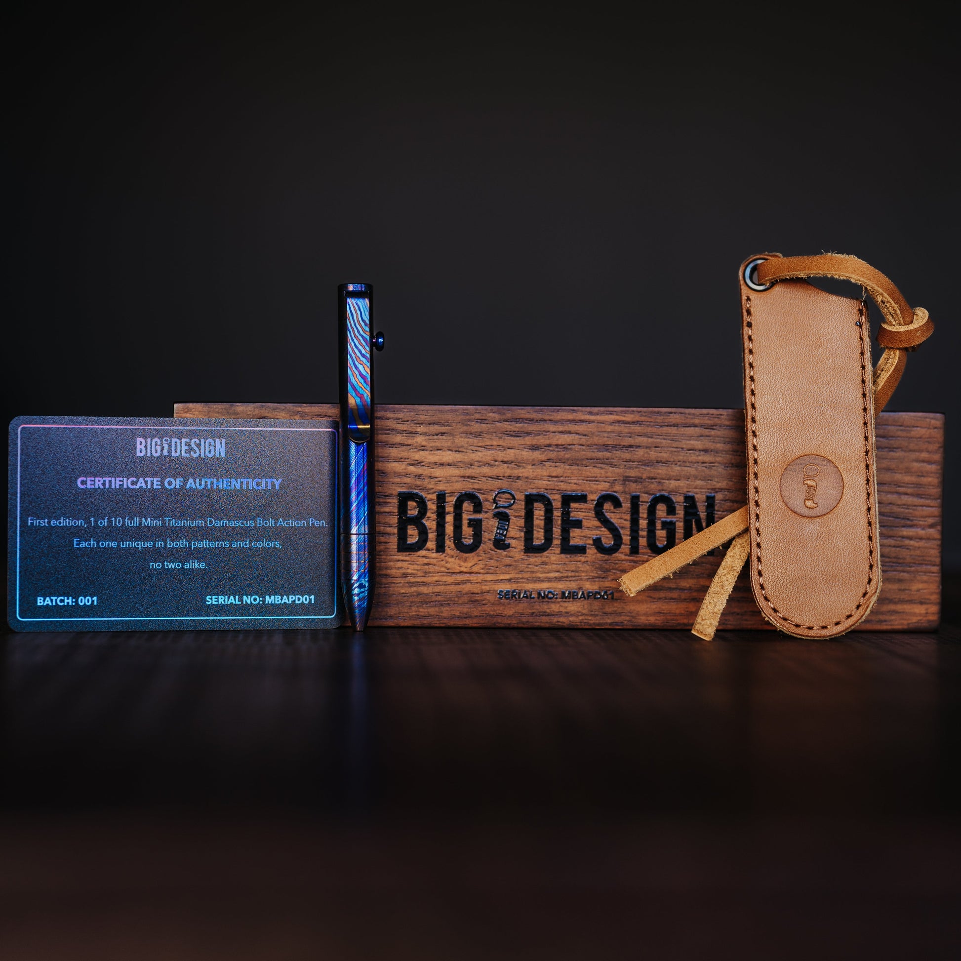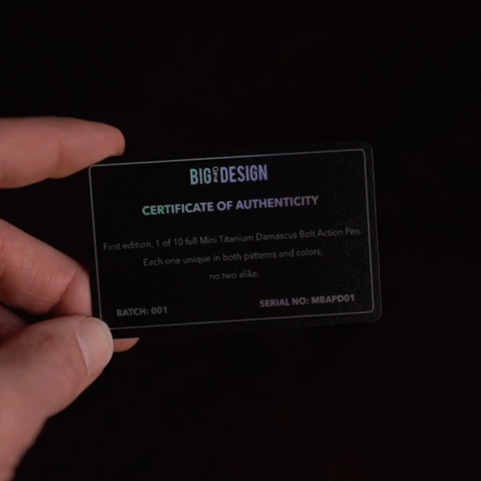 Each of these Mini Bolt Action Pens are solid titanium damascus, polished and flame treated to give unique colors and designs. No two are the same! Each pen serialized so you can pick out your perfect one.