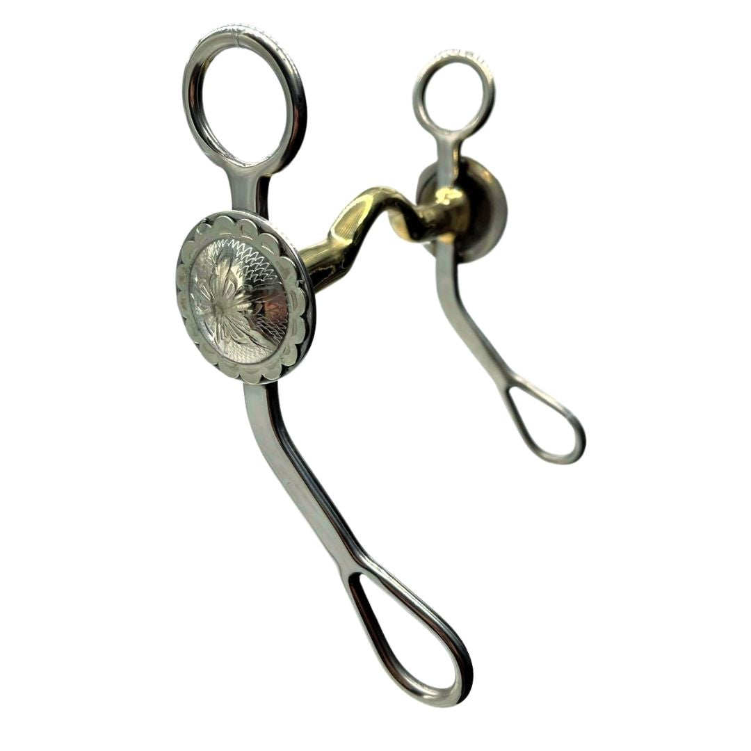 A beatiful low curb bit with 6" cheeks, engraved German silver concha and a 5" Nickel-Free mouth. This bit is designed to be easy on a horse's mouth with a moderate amount of leverage. It works best with older, bridle-wise horses.