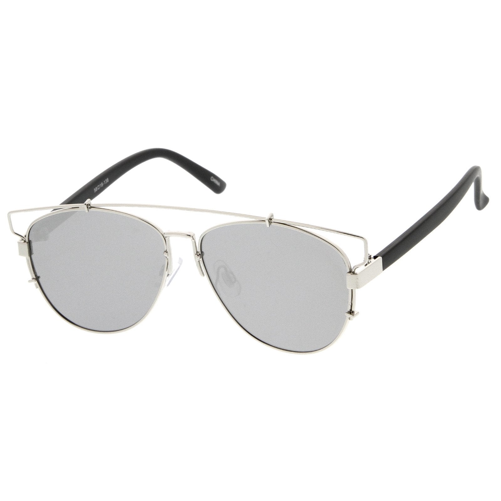 Modern Metal Crossbar Mirrored Lens Flat Front Sunglasses A145