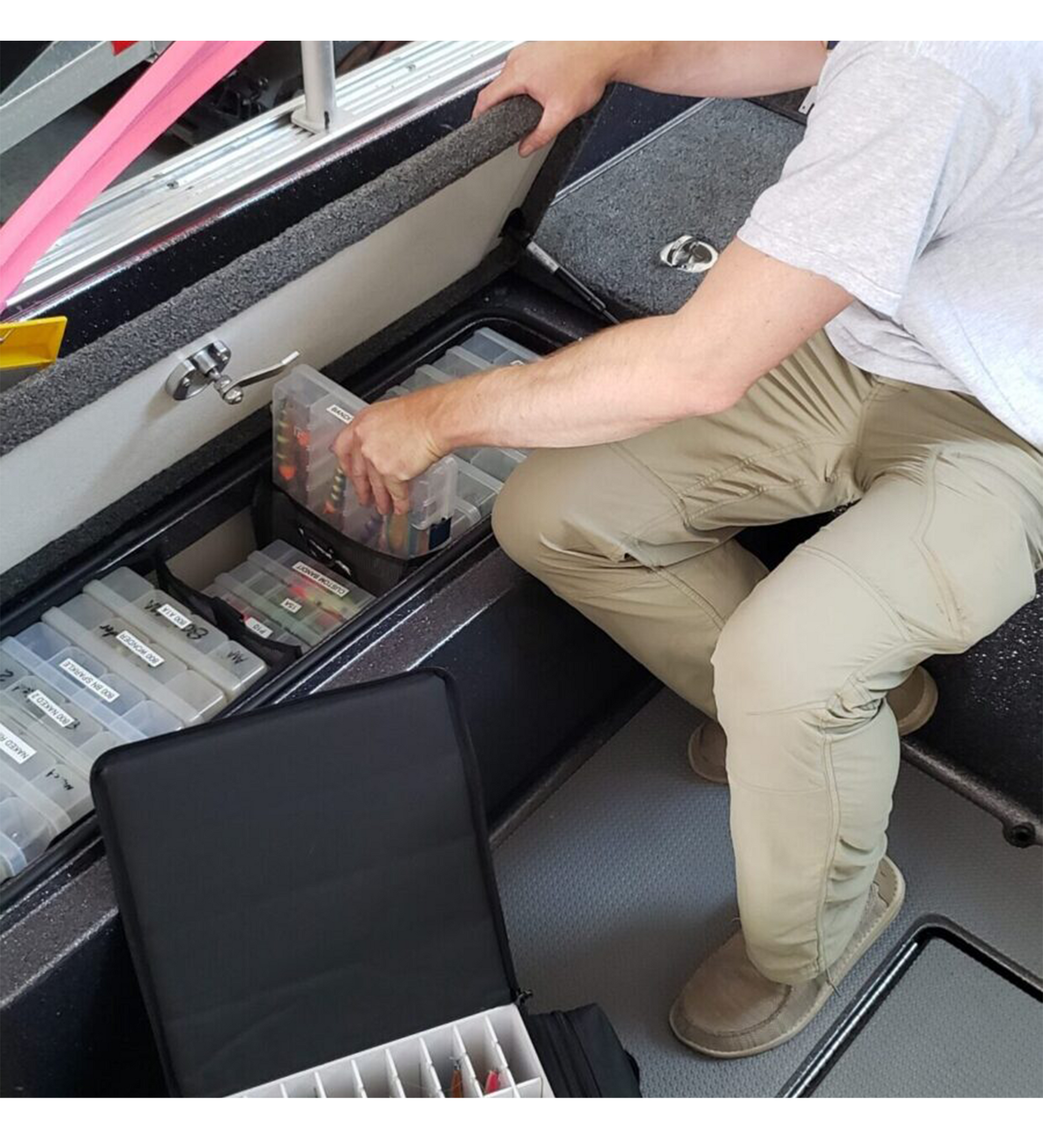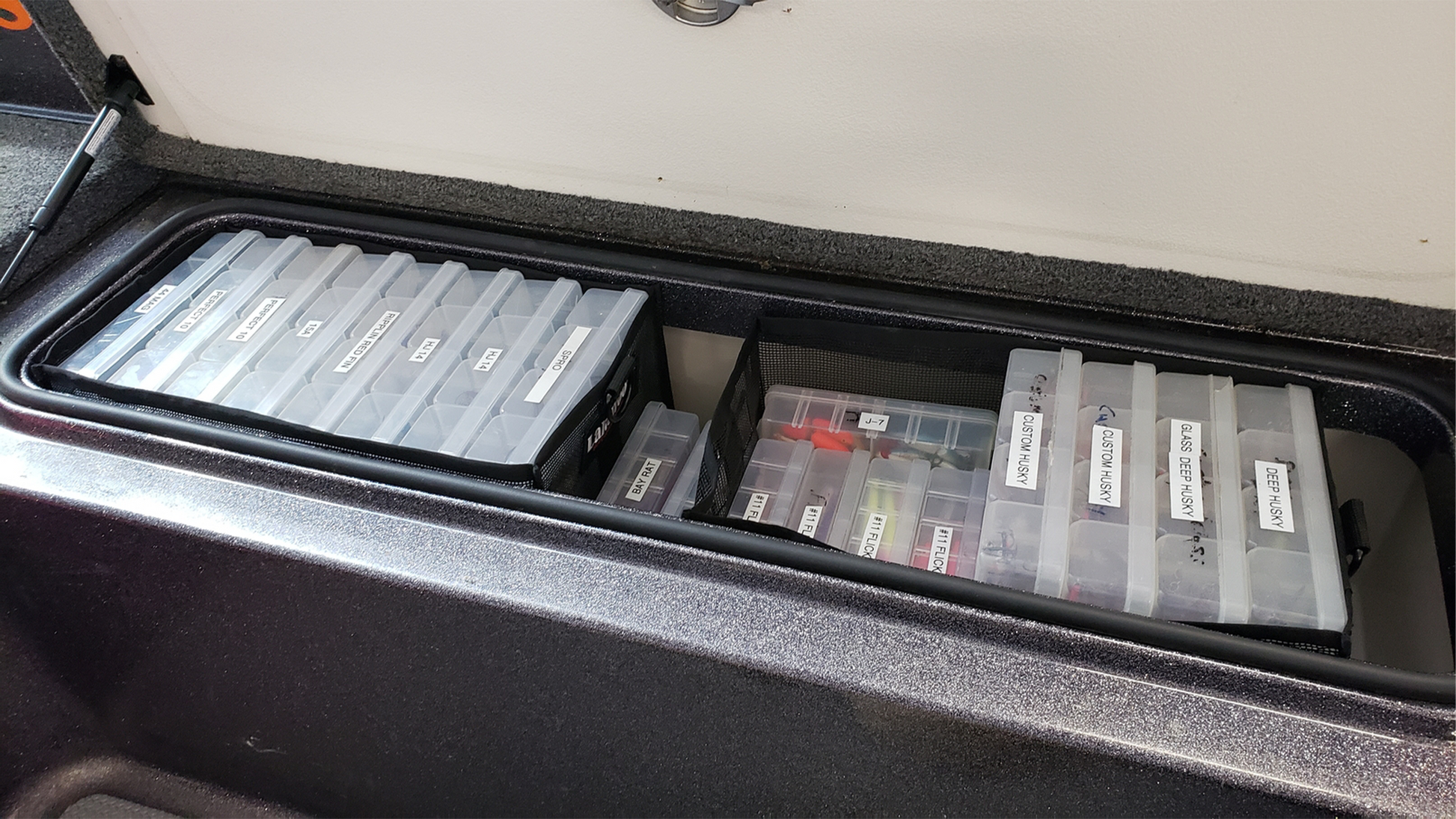 - Designed to hold Lure Wallets, Vaults, utility boxes, and other items from shelf to vehicle to boat compartments