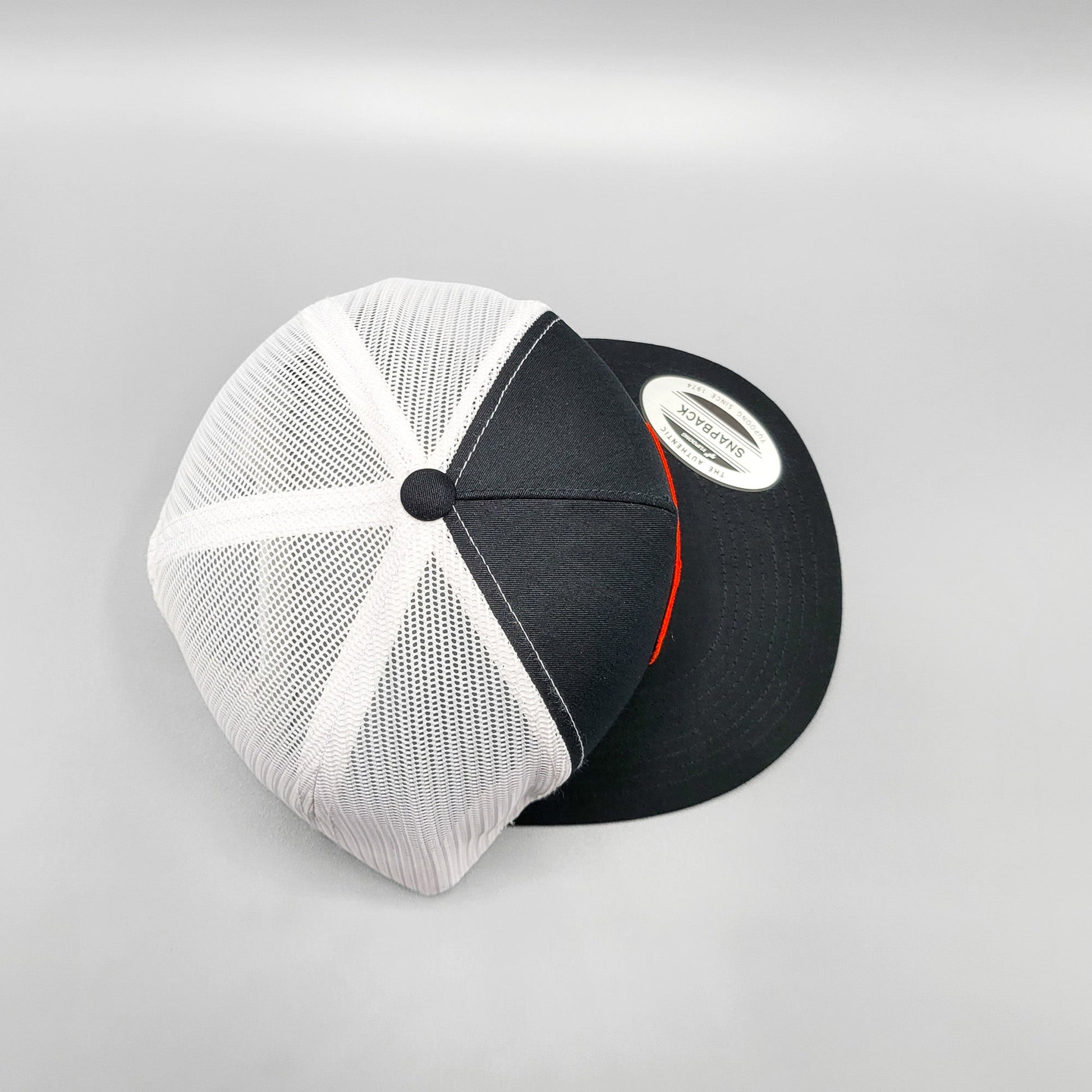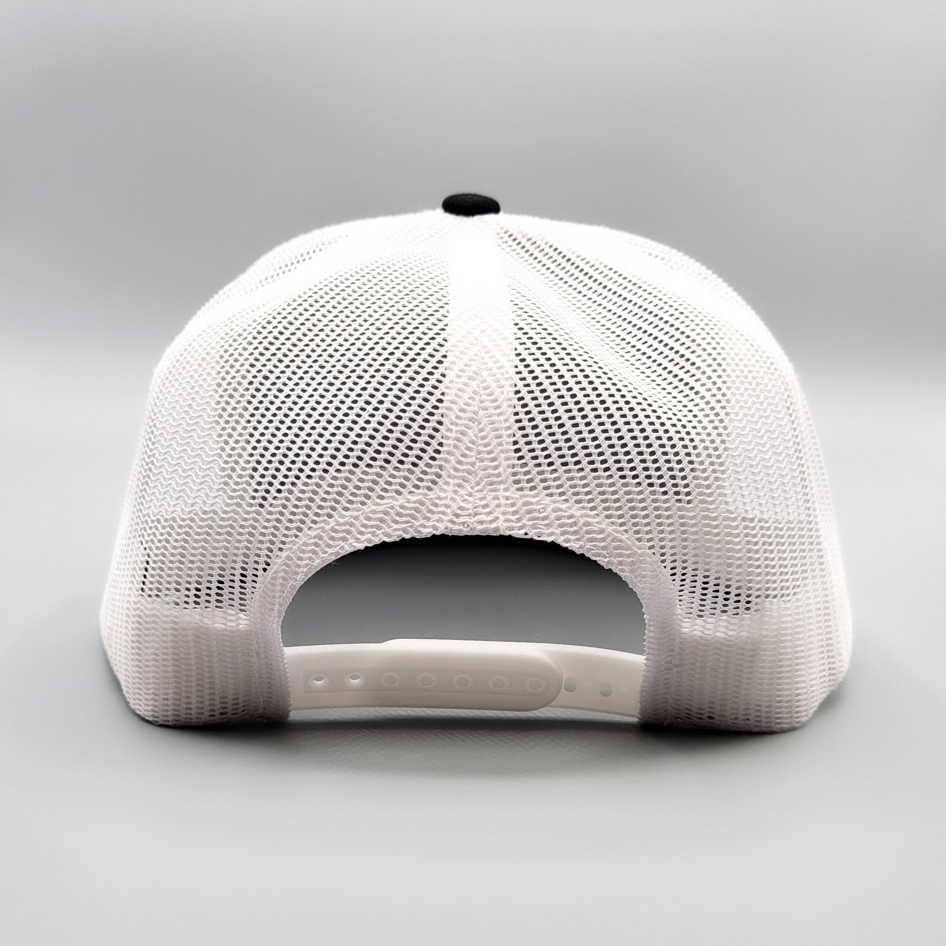 This listing is for a Mr. Owl "How Many Licks" Tootsie Roll retro-styled embroidered patch on one of our best selling (and best fitting) baseball style trucker hats -- a black and white mesh Yupoong 6006 Classic snapback trucker hat.
