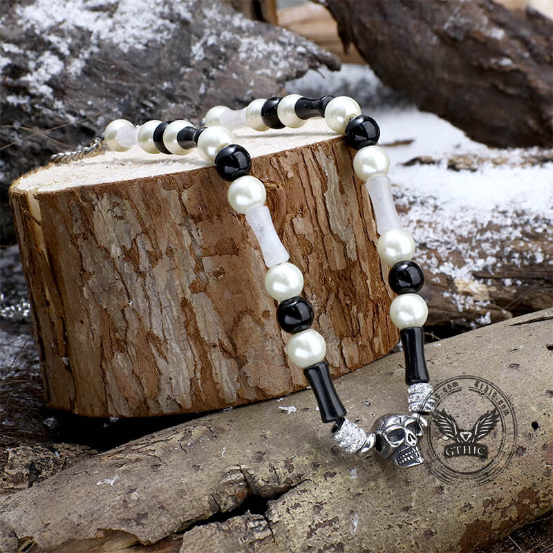 Multi-color Gemstone Beaded Stainless Steel Skull Necklace