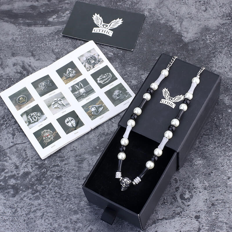 This necklace continues to use the classic skull element, with the color different color various stones. The collision of different colors and materials makes the whole product more fashionable, novel and elegant. Get yours now!