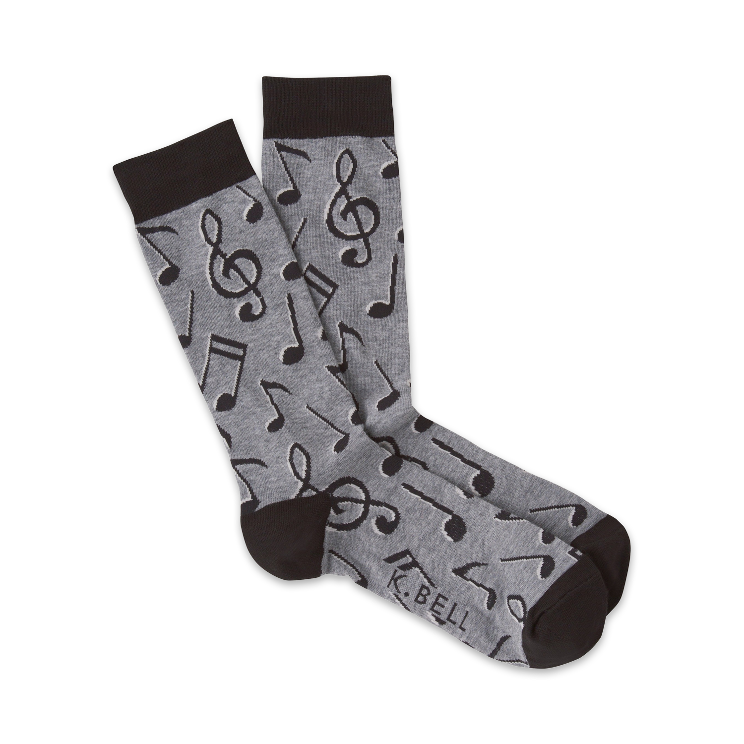 Music Notes socks rock! These fun crew socks for men feature a rhythmic pattern of black treble clefs and eighth notes dancing on a gray background. Whether you're a maestro on the mic or a virtuoso on the viola, these socks will make you feel like hitting the high notes all day long. Put on a pair of these melodic socks when you need a reminder that life is a beautiful symphony.