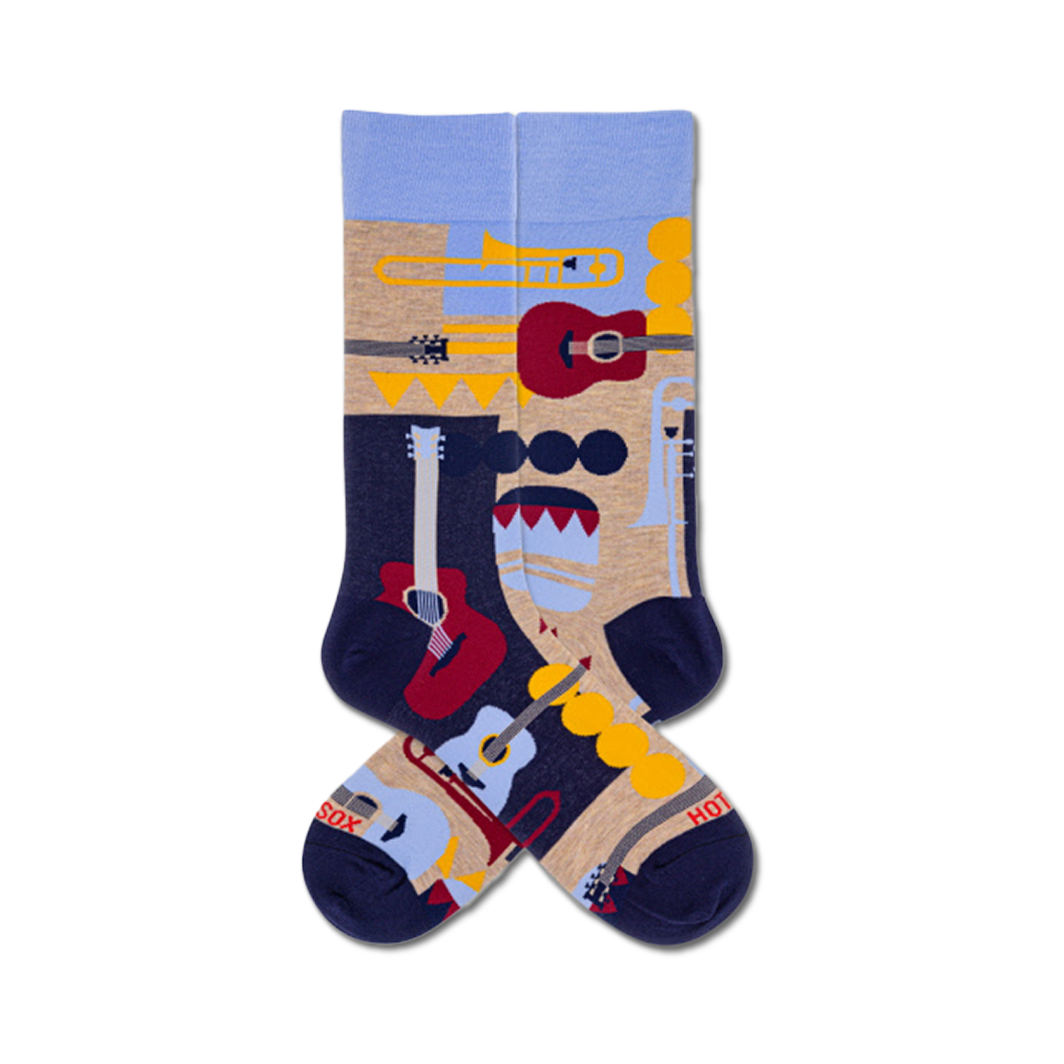 Rock the beat with these Music Retro socks! Featuring a symphony of musical instruments, these socks are sure to make a statement wherever you go. Strut your stuff in style while paying homage to your love for all things musical. Perfect for music lovers, musicians, or anyone who appreciates a touch of whimsy in their wardrobe. Keep the rhythm alive, one sock at a time!