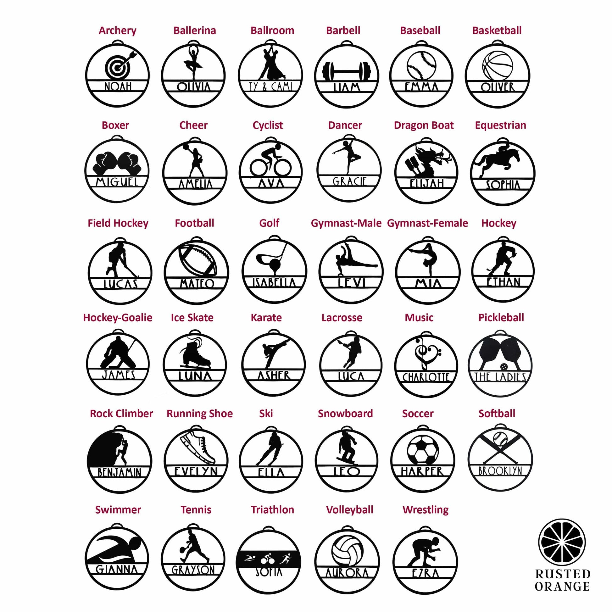 My Favorite Athlete Ornament - Single - 30 Sports Theme Styles - Metal Christmas Ornaments