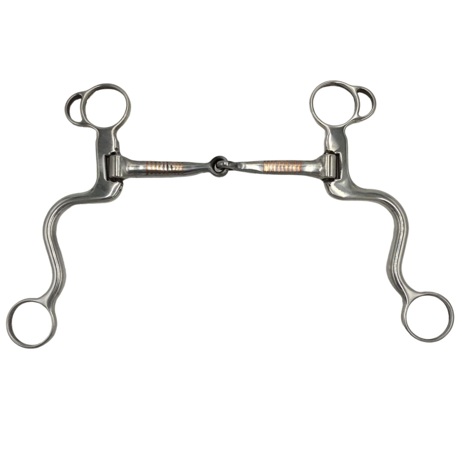 Our "S" Bits are wonderfully balanced and will ride perfectly in the mouth. 5" snaffle mouth with inlaid copper and 7 1/2" "S" cheeks. A bit that works for a wide variety of horses.