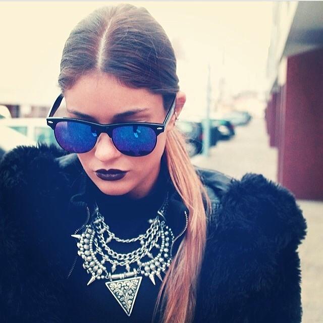 - Classic meets modern with these semi-rimless horned rim half frames that features an eye-catching color mirrored lens. The modern update to the forever classic half frame is a stylish and refreshing look this season. Made with acetate on the brow and temples, a metal eye wire under frame and clear polycarbonate UV protected lenses.