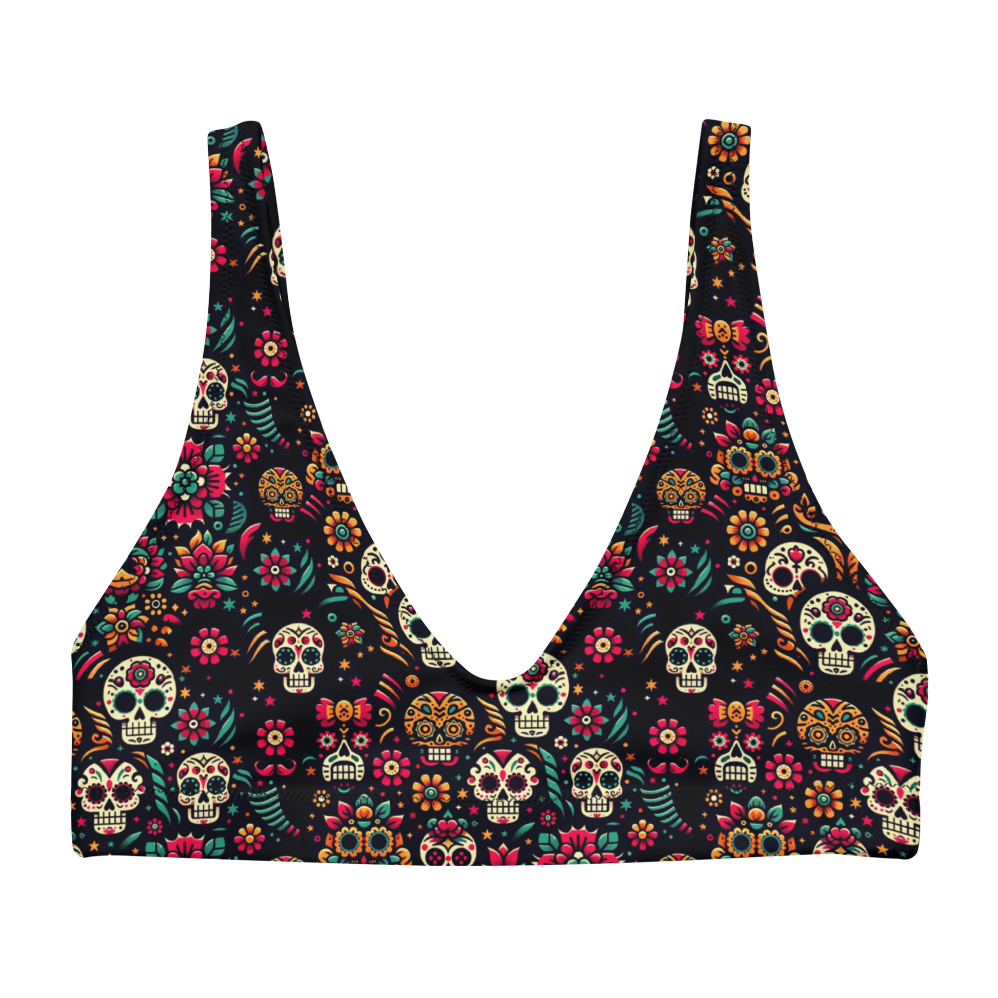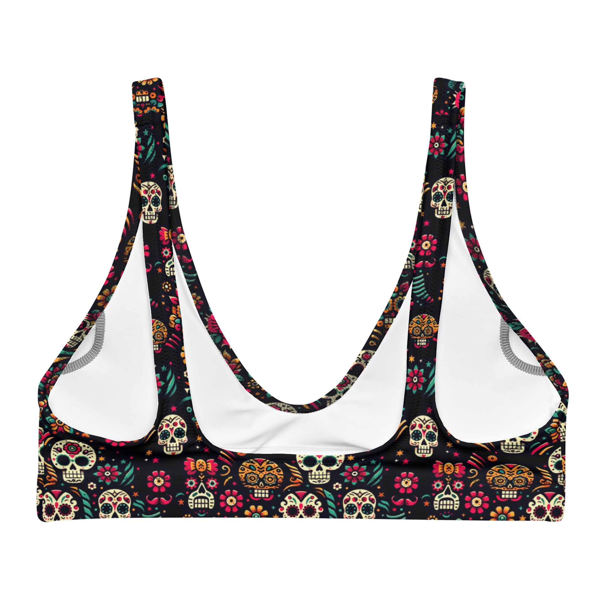 Night Calavera: Dark Skulls High-Waisted Bikini Top