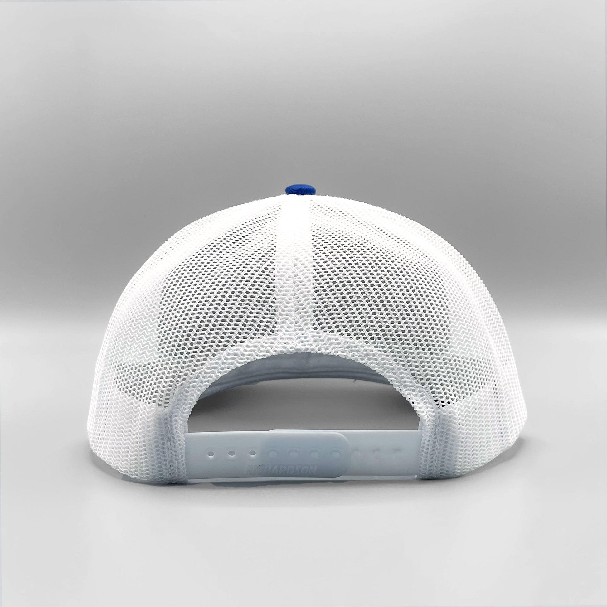- - Classic royal blue trucker cap with premium, white mesh panels