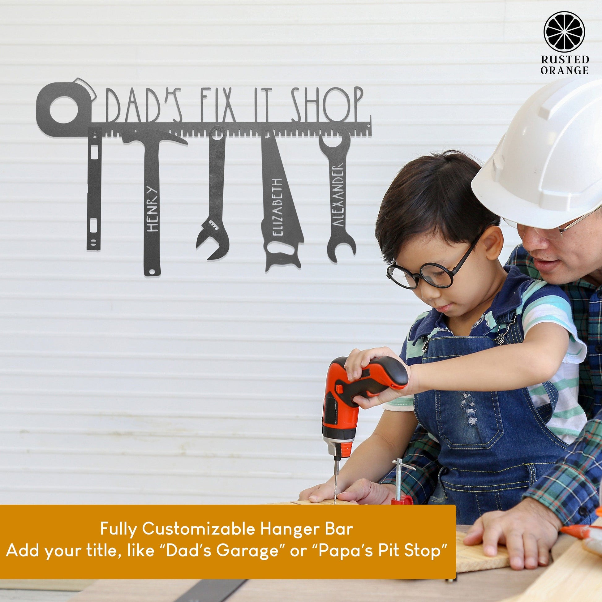 Fully Personalizable Hanger – Top hanger bar can be customized with a title or name (up to 21 characters) like “Dad’s Garage” or “Papa’s Tools” to add a meaningful touch.