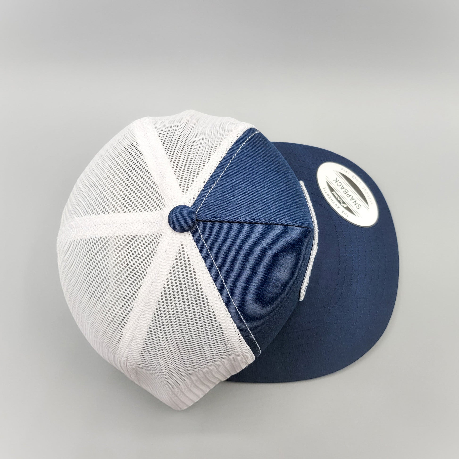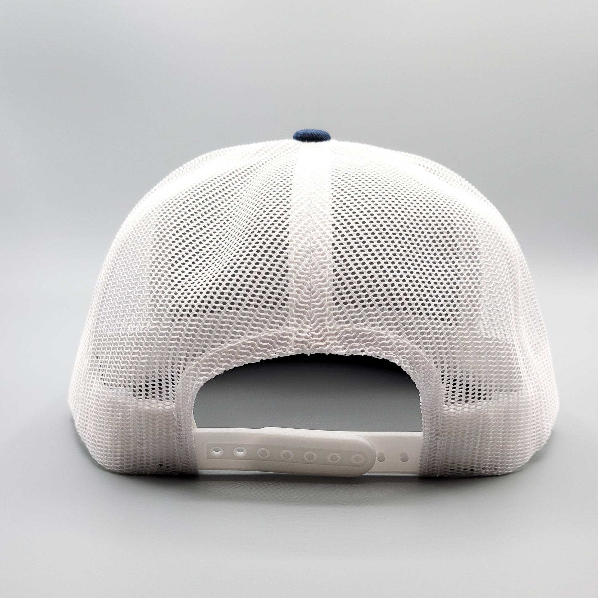 - - Classic navy and white mesh trucker cap with premium, matching mesh panels