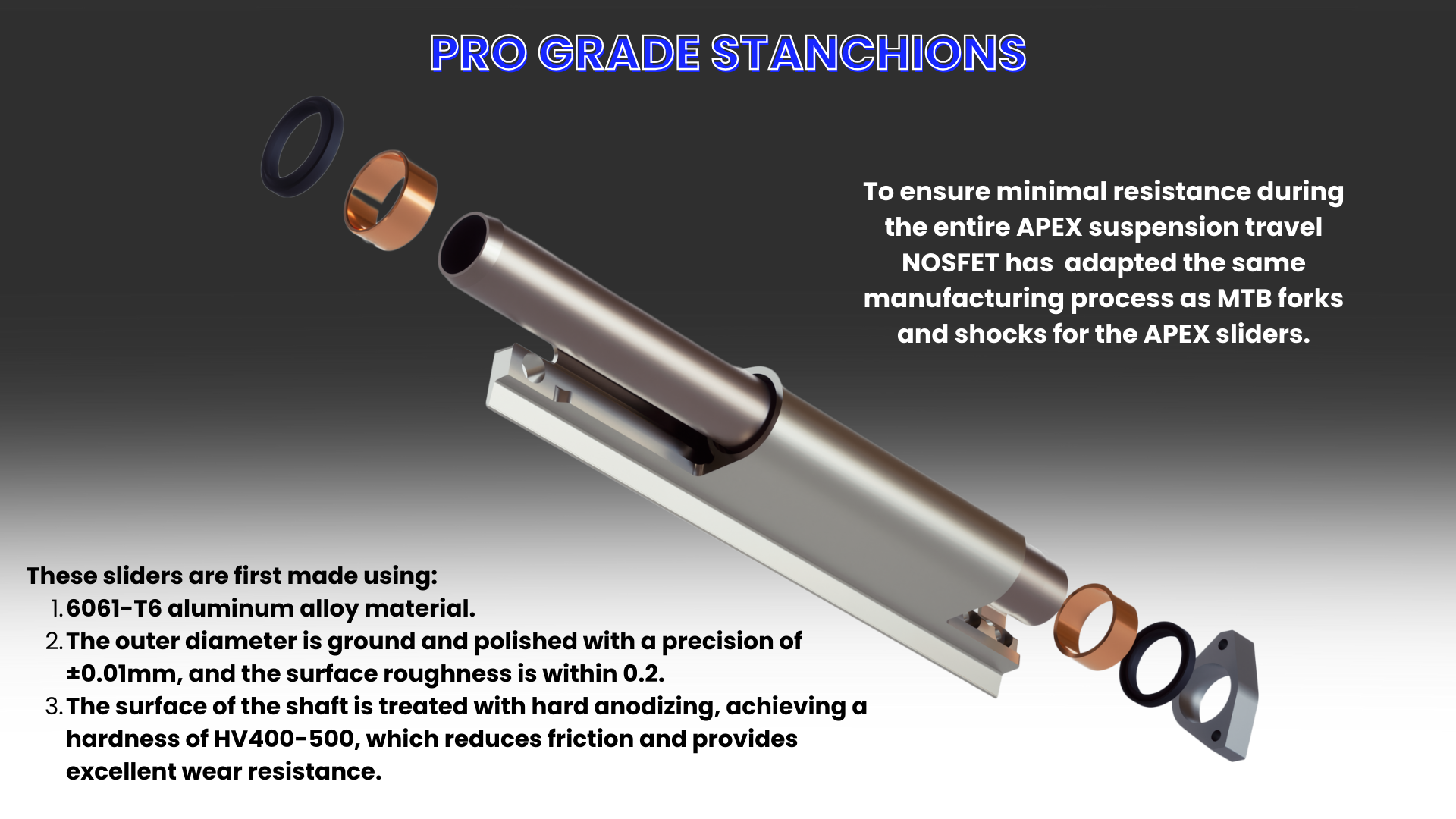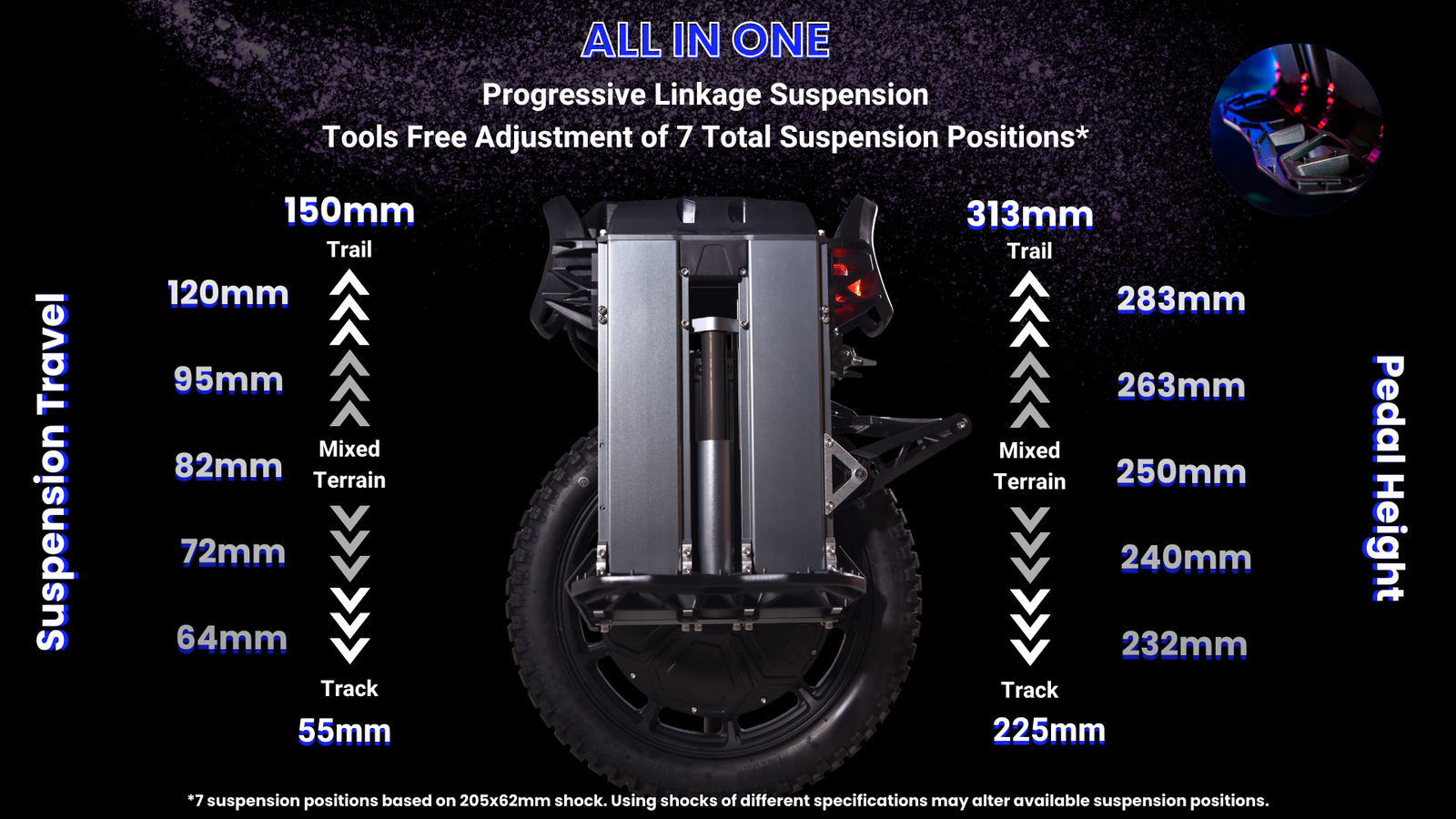 - Suspension: Fully adjustable DNM suspension (TRU 8RC or RCP 2S). Coil option available.