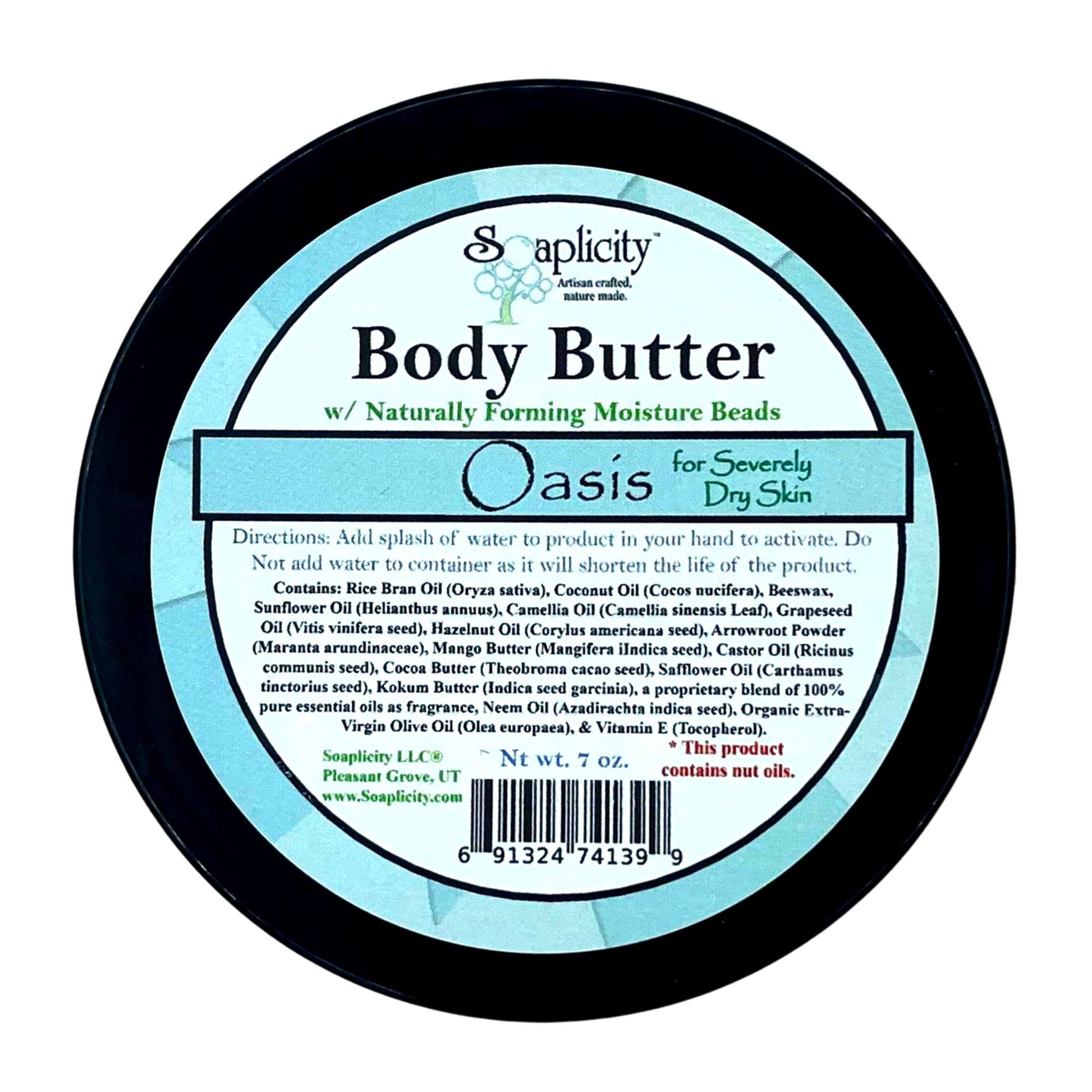 Oasis Body Butter is formulated for those who suffer from severely dry skin on larger portions of their body than just their hands. Infused with deeply penetrating Neem Oil and skin-loving 100% pure essential oils of Tea Tree, Frankincense, and Geranium, skin's moisture and resiliency returns for skin you will love again! Don't forget to pair this with our premium Oasis Products for a comprehensive front on severely dry skin. Safe for babies.