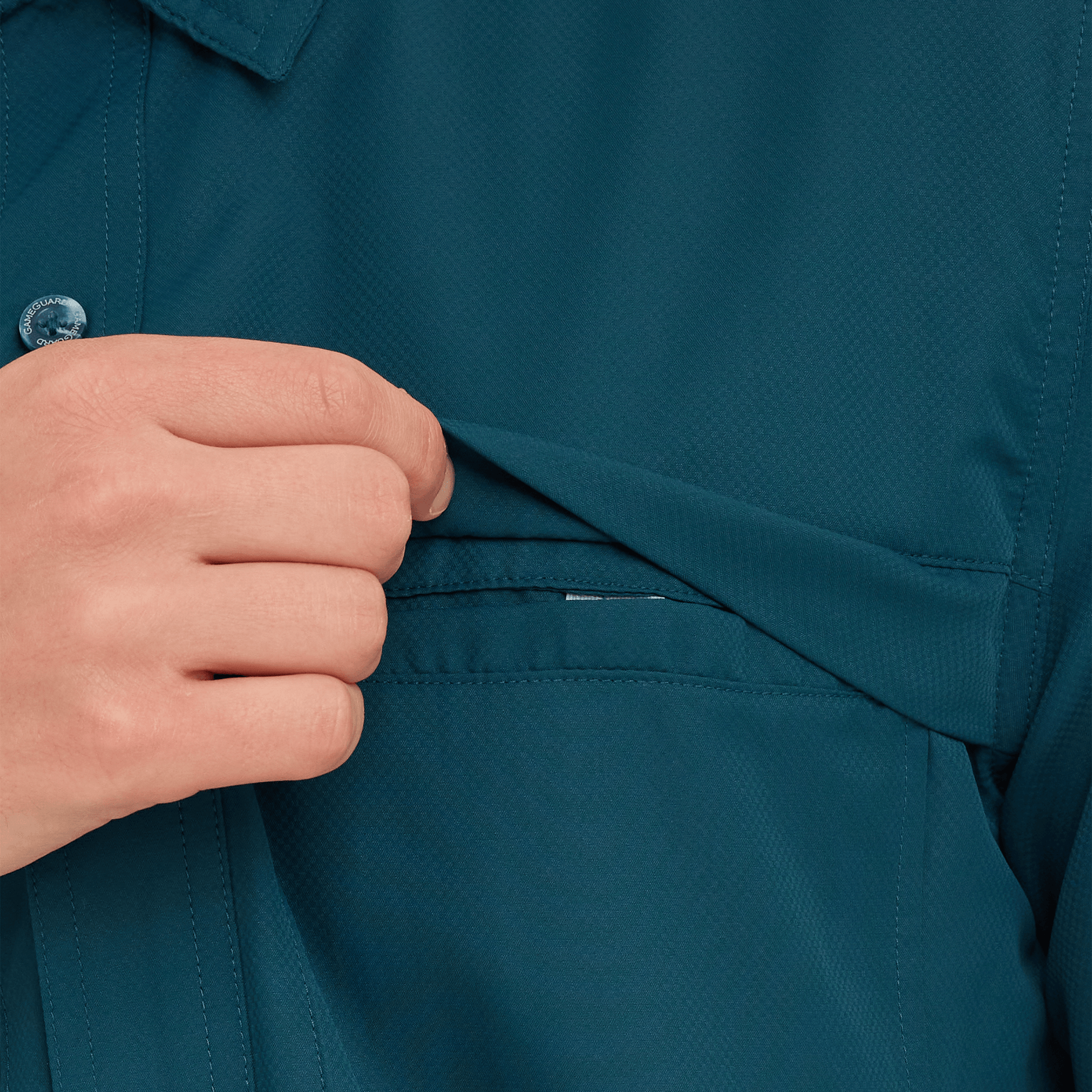 Designed for those who thrive outdoors, the Explorer Shirt is built to perform whether you're tracking game, casting lines, or navigating rugged trails. Its lightweight microfiber construction provides UPF 50+ sun protection, while mesh-lined vents at the chest and back keep you cool in the heat. Quick-drying and wrinkle-resistant, this shirt is as reliable as it is functional. Hidden chest pockets and a lay-flat collar with hidden snaps add practicality without compromising style. Stain resistance ensures the shirt stands up to the demands of the outdoors, while a built-in lens cleaner ensures your gear is always ready. Perfect for hunting, fishing, or exploring, this 100% polyester shirt is your all-in-one solution for adventure.
