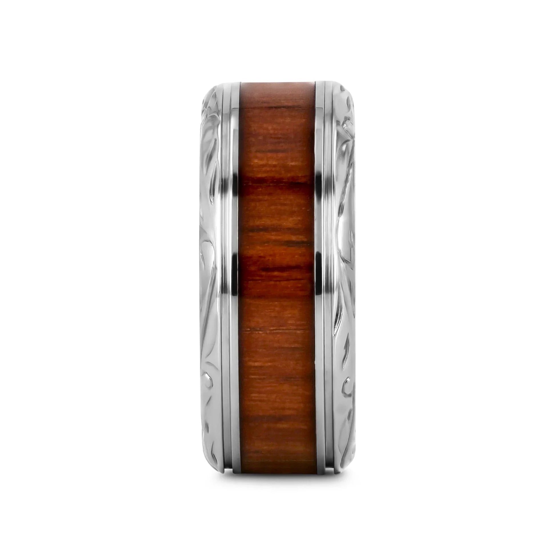 OHANA Koa Wood Inlaid Titanium Men’s Wedding Ring with Intricate Edges - 6mm - 10mm