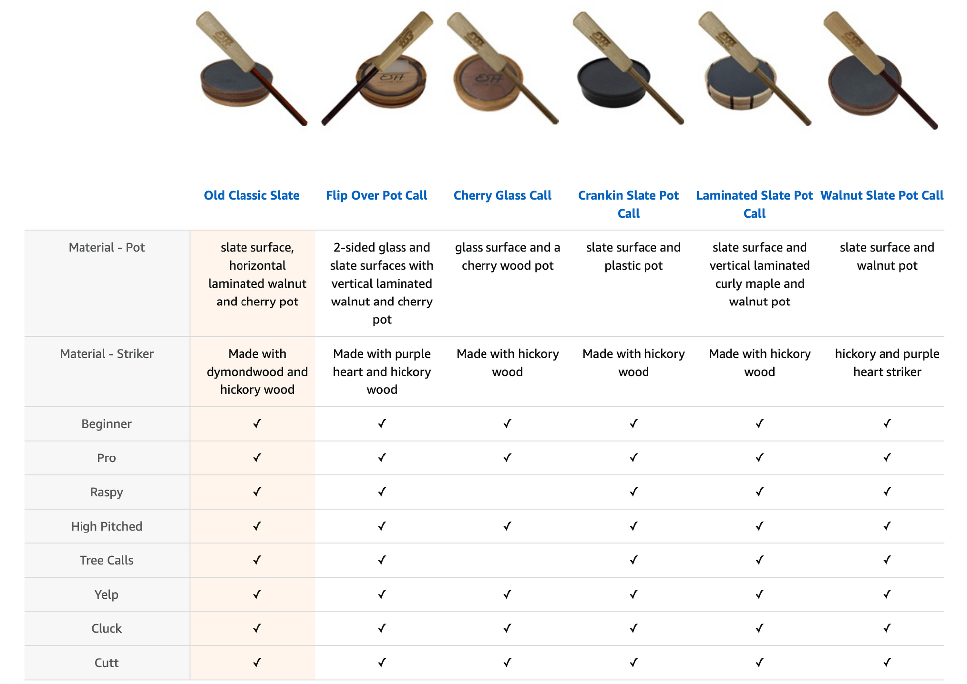 REALISTIC HEN SOUNDS - Our Old Classic Slate pot call is set in a horizontally laminated Walnut and Cherry Pot and comes with a Dymondwood Striker. Use this hunting call to imitate the sounds of a real hen even the wisest old male will be fooled by.