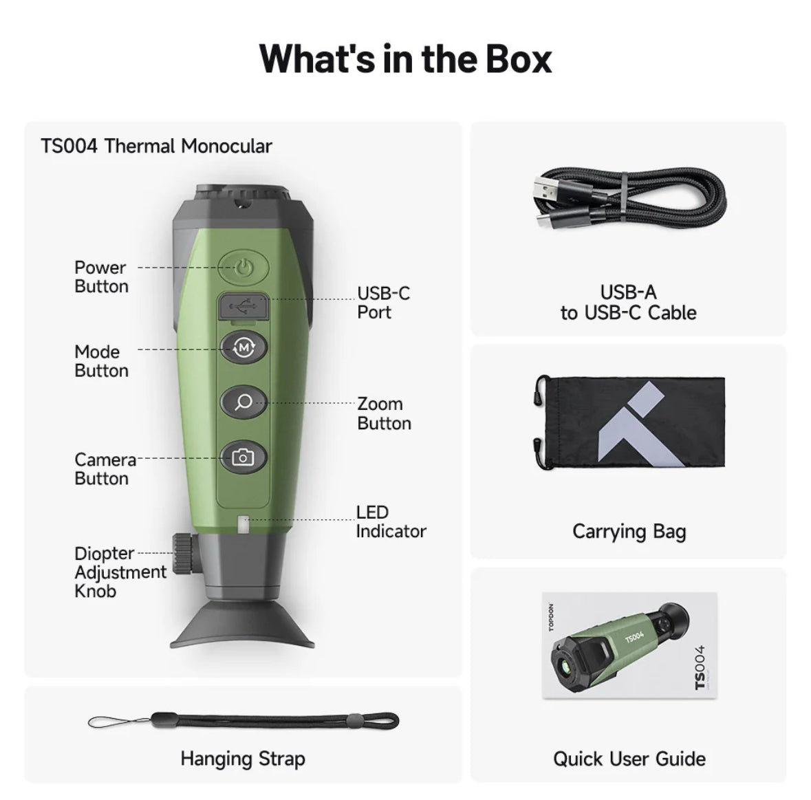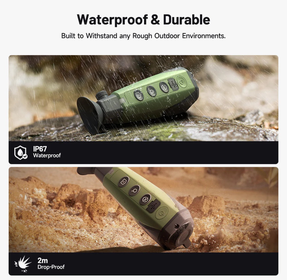 The TS004 reaches out to 1,000 meters (1,094 yards) of thermal detection range, offering 5 color palettes, Wi-Fi image sharing, and 10 hours of continuous runtime on a single charge. The IP67 waterproof housing shrugs off dust, rain, and rough handling, so it’s ready when you are.