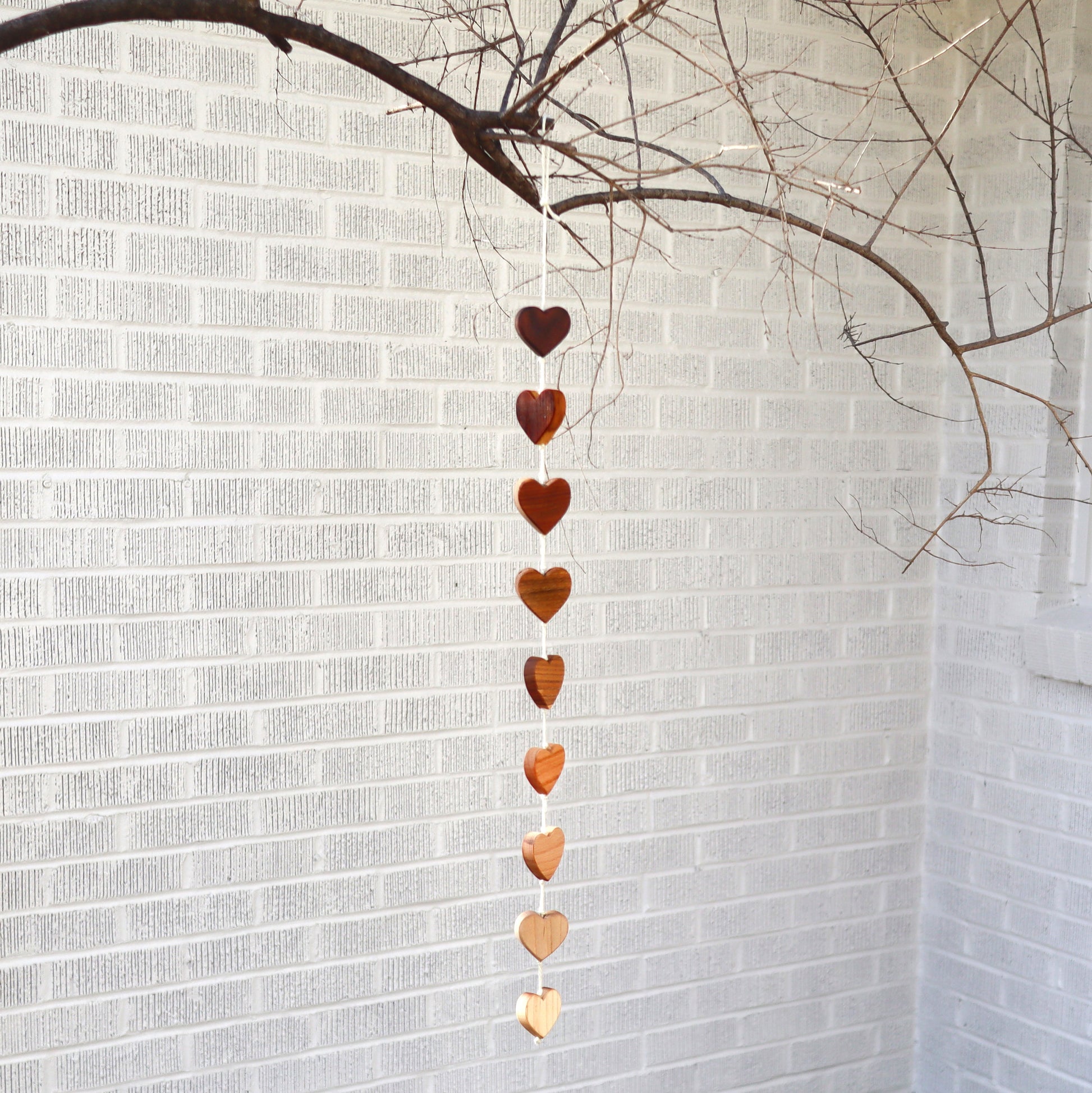 Each includes nine wooden hearts. No two are alike since each heart is unique, but they all have an ombré motif, just like the beautiful sets in the images, each connected with an ivory jute string.