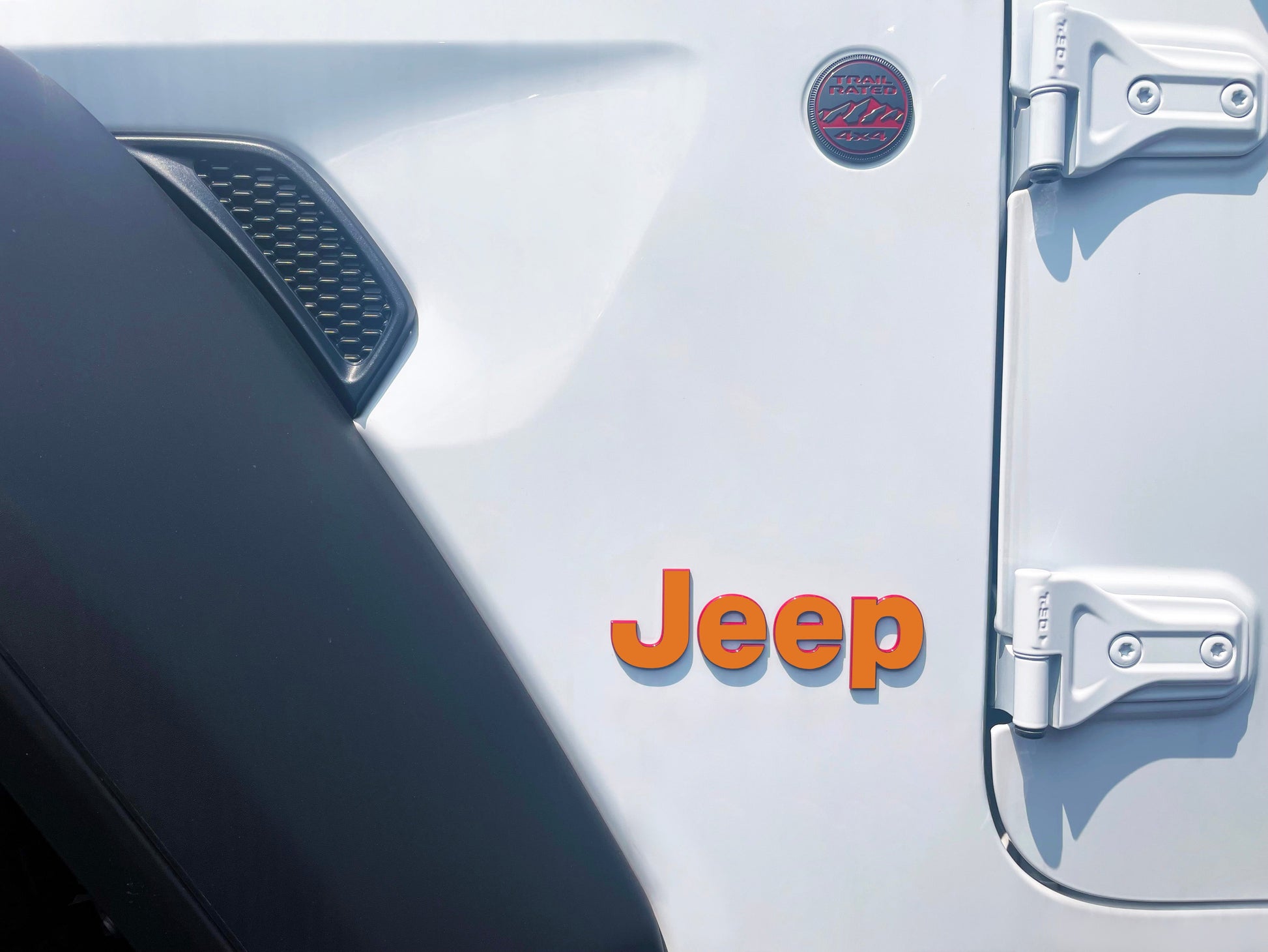 Orange Jeep Fender Emblem Overlay Vinyl Decals 2pk