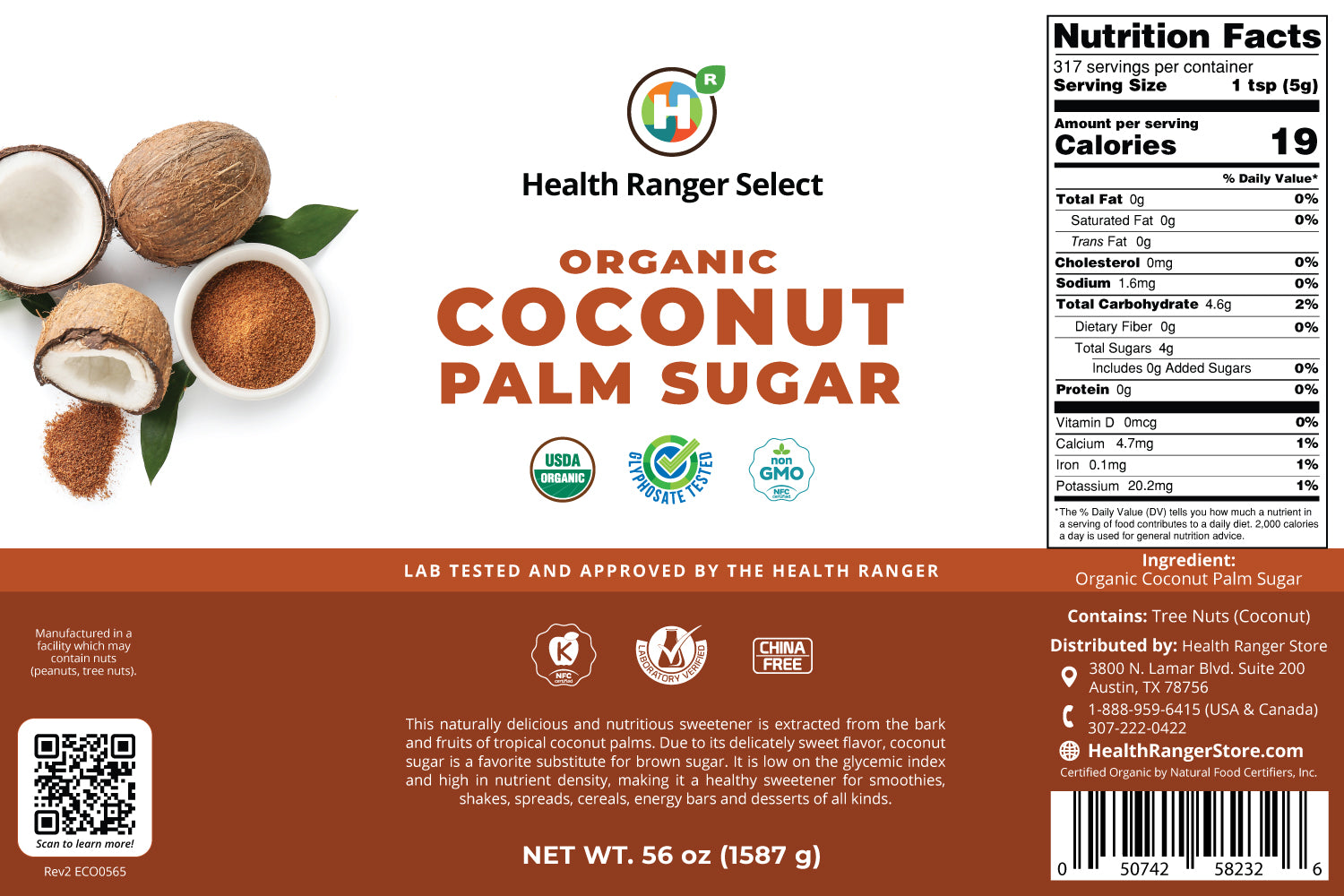 Organic coconut sugar is derived from the nectar in the fruit and bark of the coconut palm (Cocos nucifera). It is a golden-brown, crystalline sweetener often considered a nutritious alternative for brown sugar. It is produced by heating the nectar, or palm sap, to remove its water content. Once dehydrated, the remaining substance is granulated until it resembles the coconut sugar we all know and love.