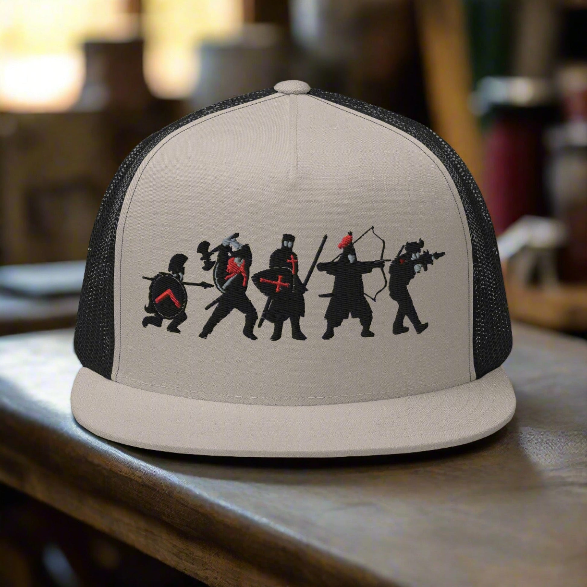 Our original "Bloodline" trucker hat celebrates the brave warriors who have protected their lands and people throughout history. From the Spartans of ancient Greece to the fierce Vikings of Scandinavia, the honorable warriors of Asia, to our modern warriors, this design pays tribute to the courage and strength of these heroes. The original Bloodline hat is a reminder of the sacrifices made by these warriors, and a way to honor their bravery and service. Wear it with pride and honor the warrior Bloodline.