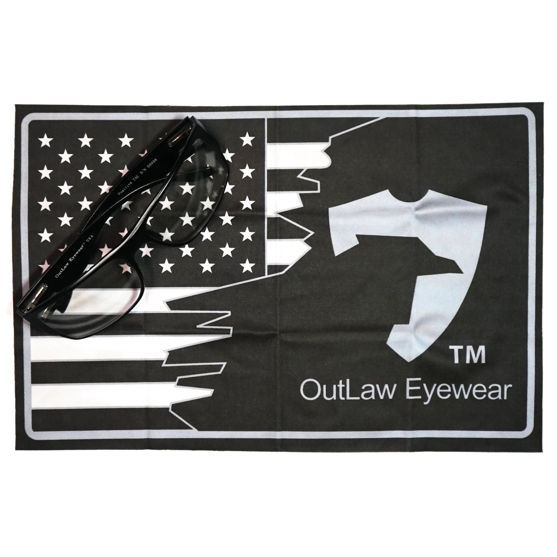 Maintain razor sharp vision in with perfectly clean sunglass lenses with OutLaw Eyewear Glasses Cloth! As an industry recognized leader in motorcycle sunglass design, sales, and distribution, OutLaw Eyewear yielded to the needs of our great nation and expanded the product line to include Eye Protection capabilities for the United States Military, DoD, and Police Departments. We take this responsibility extremely seriously to produce eyewear and equipment that's fit for service! One thing's for sure, our eye glass clean cloths certainly didn't miss the memo! Key benefits for our users... BIGGER IS BETTER, oversized to ensure maximum coverage and minimum washing requirement. ULTRA SILKY, soft to touch by tough on the trespassing dirt on your lens BADASS DESIGN, the star-spangled banner met with the rad OutLaw logo for a design you can be proud to claim LOW MAINTENANCE, soak in common dish soap and water to get your finger grease out MADE IN THE USA, only the highest manufacturing standards will do Suitable for sunglasses, tactical glasses, multi-coated lenses and regular and reading glasses alike, this glasses cleaning cloth for eyeglasses releases you from hampered vision and dirt spots on your lenses quickly and effectively. Functional for several purposes, our fully optimized eyeglass cloth for cleaning allows you to stay focused on the task with clear sight on often just one smooth gliding swipe across your lenses. Our ultra-fine densely woven cleaning cloth for glasses are easily washable and reusable for impressive longevity as well as being lightweight for easy carrying, keeping your eyeglasses in impeccable condition, year after year. OutLaw Eyewear Cleaning Cloth For Glasses Lenses, you'll be telling your friends where you got yours!