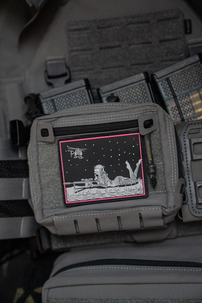 Crafted from heavy-duty PVC, the Overwatch Patch combines rugged durability with a fierce edge. Its molded hook and loop fastener backing ensures a secure fit on most fabrics, ready for any tactical operation. At 3 inches wide, this patch features a tattooed, long-haired bombshell in tactical gear, embodying boldness and battlefield readiness for those who demand gear with uncompromising style and expert toughness.