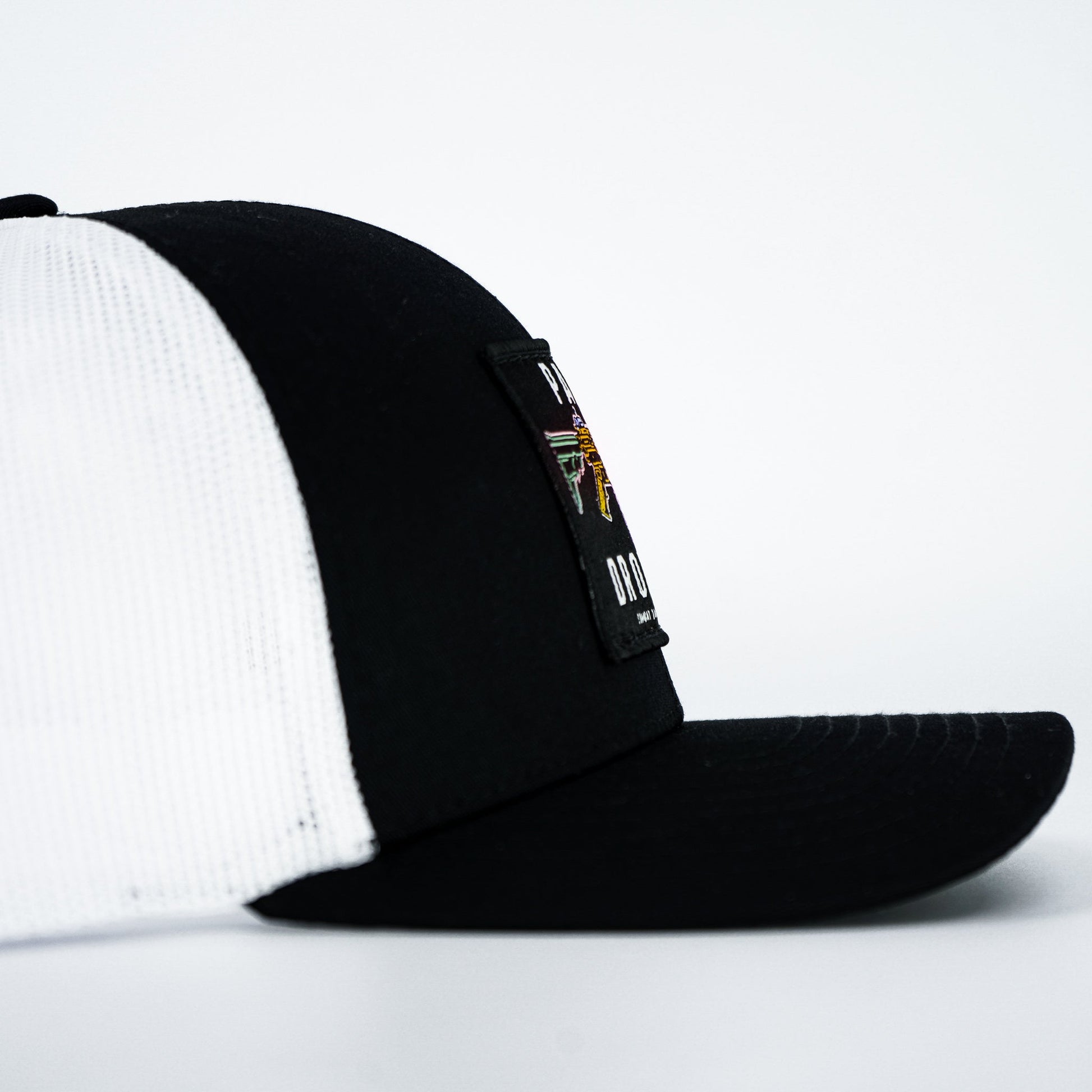 A Trucker hat that combines classic style with modern comfort, featuring a structured 6-panel design and a hard buckram front for a timeless look. Its breathable mesh back ensures optimal airflow, keeping you cool during any activity. Crafted from a 65% polyester and 35% cotton blend, this hat offers durability and a comfortable fit thanks to it's soft adjustable snapback closure.