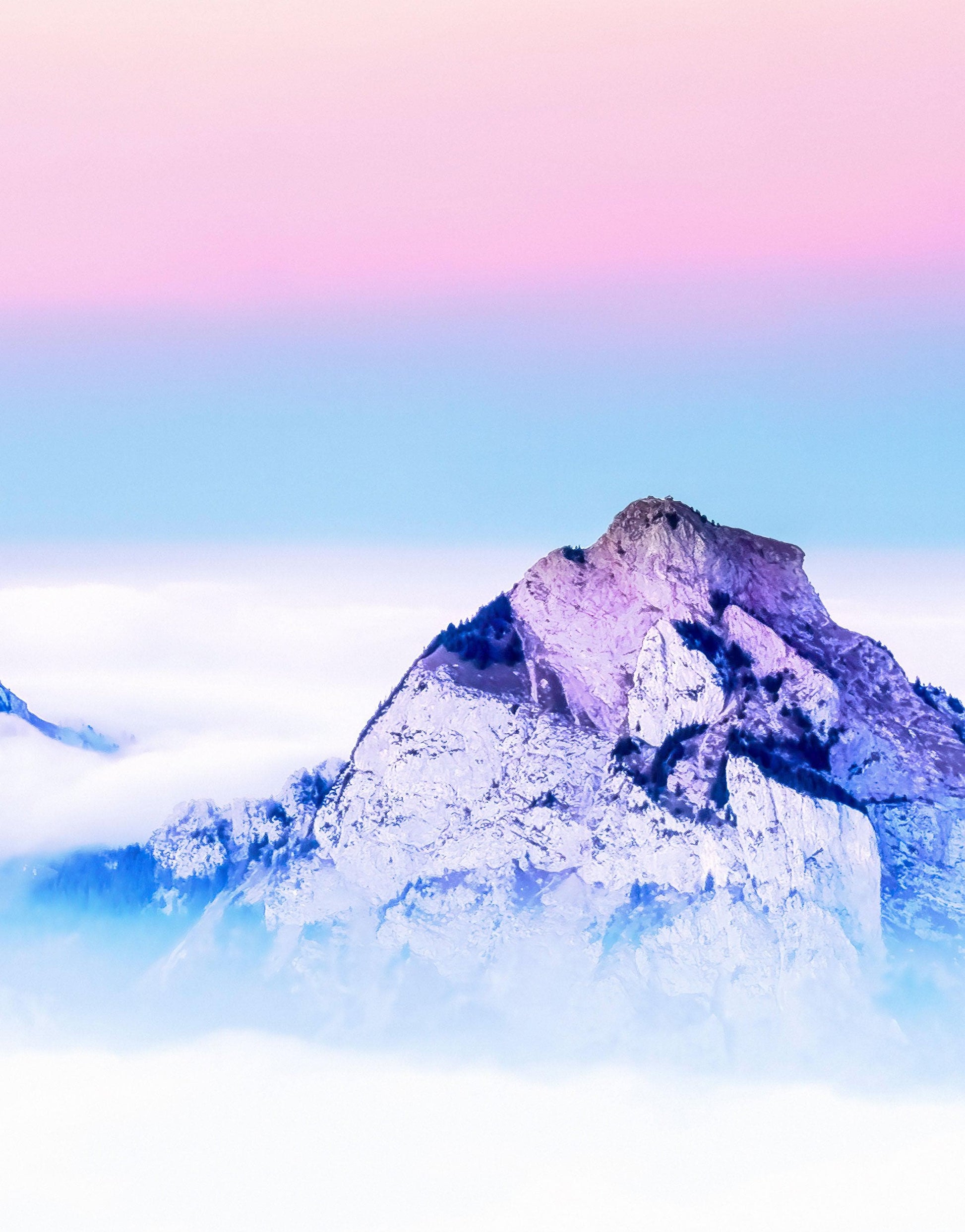 Pastel Color Mountain View on Top of Clouds Wall Mural. Peel and Stick Wallpaper / Removable Wall Mural. #6402