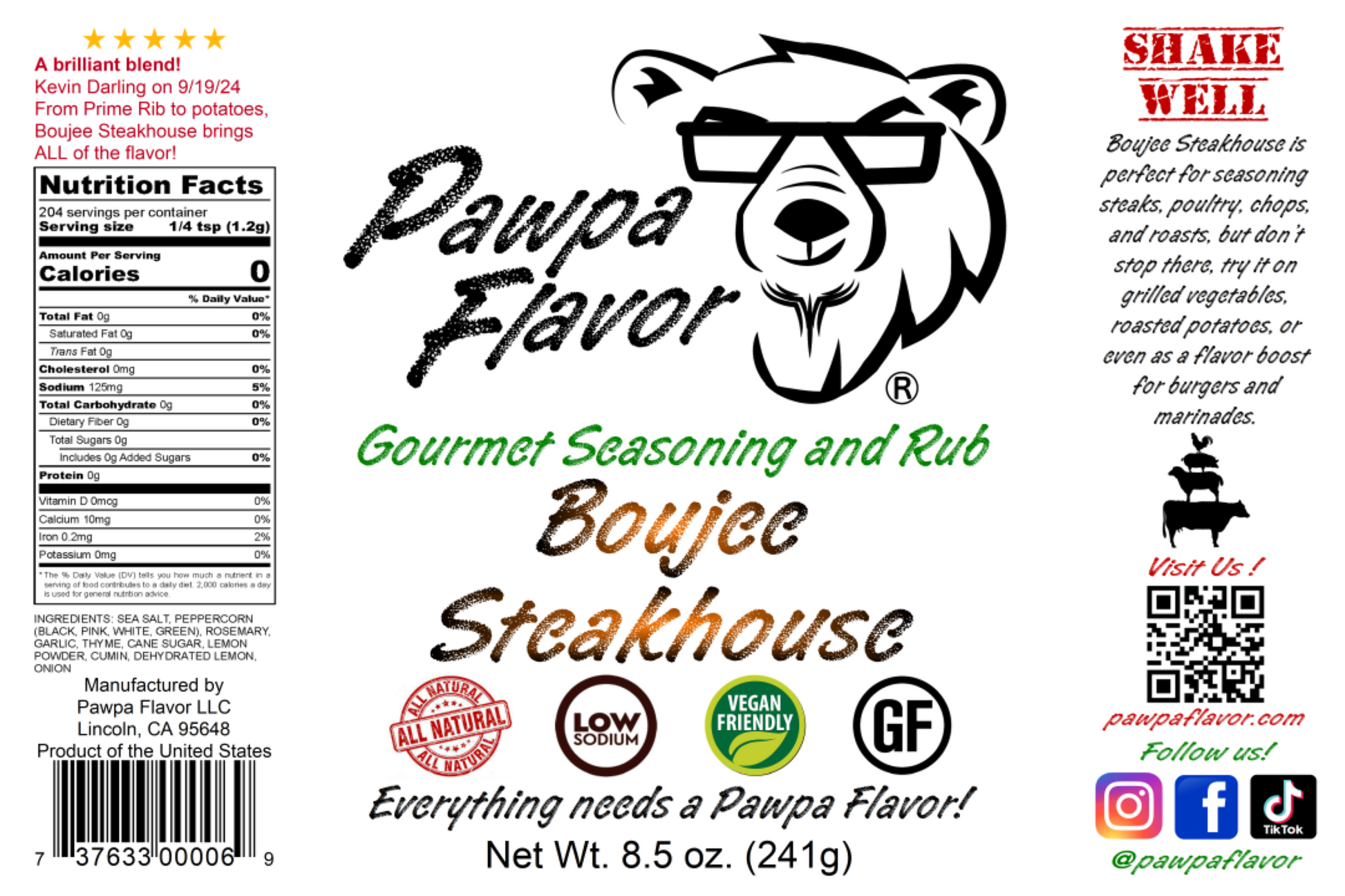 Elevate your culinary creations with Boujee Steakhouse, a luxurious blend that transforms ordinary meals into extraordinary dining experiences. This sophisticated seasoning and rub combines premium ingredients to deliver a perfect balance of savory, herbal, peppery and tangy flavors.