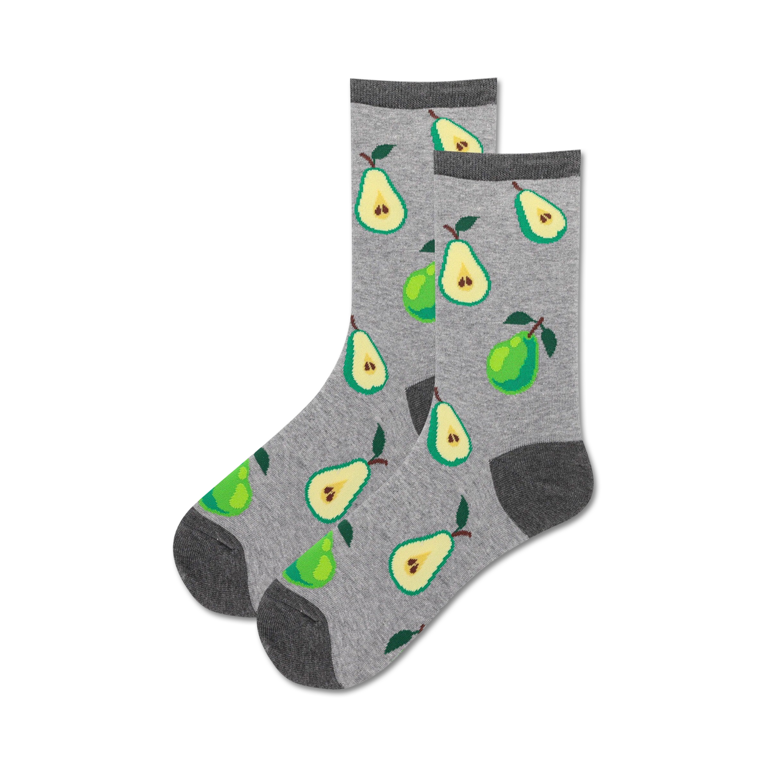 Say hello to the juiciest socks in town! Our Pear Crew socks are as sweet and juicy as the fruit itself. Picture this: a bunch of happy yellow pears, each with a cute little green leaf and a brown stem, dancing across your feet. And to top it all off, these bad boys have pink toes, heels, and cuffs. They're like a fruit salad for your feet!